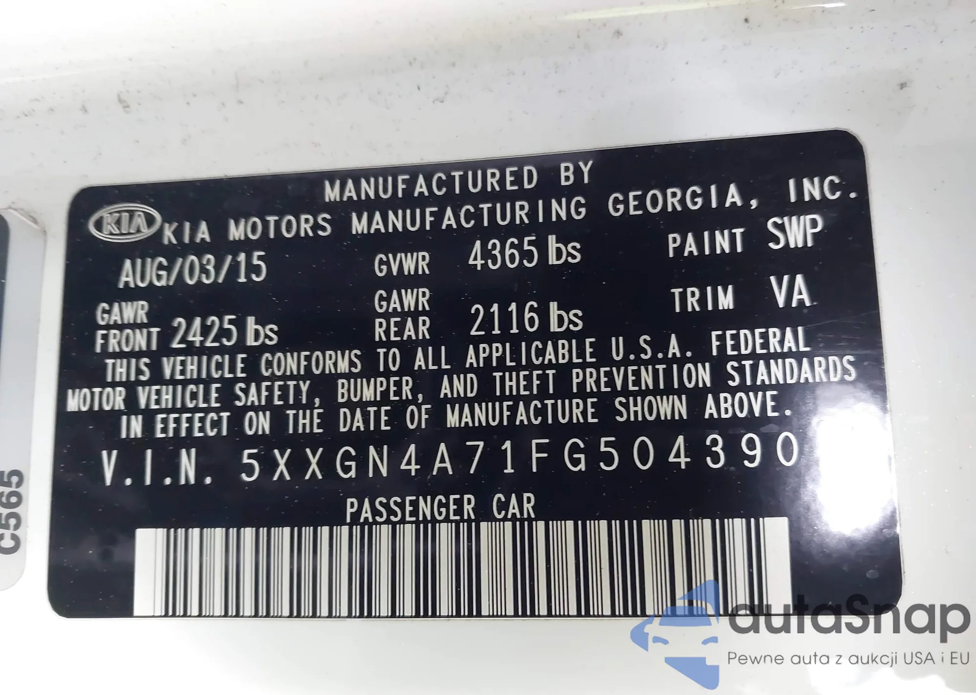 • VIN 5XXGN4A71FG504390