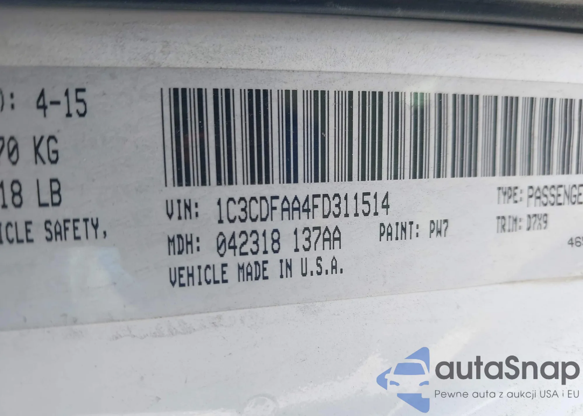 • VIN 1N4AL21E67C215124