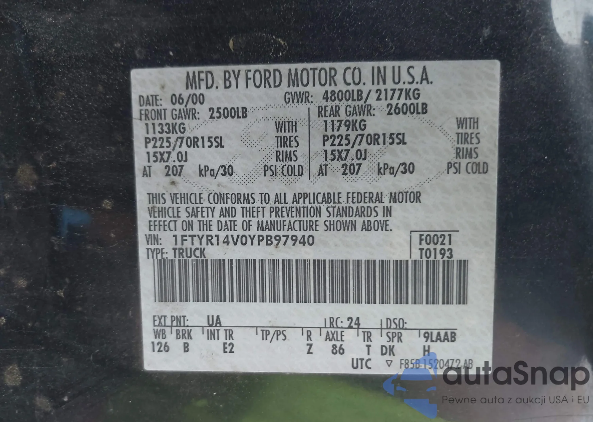 • VIN 1FTYR14V0YPB97940