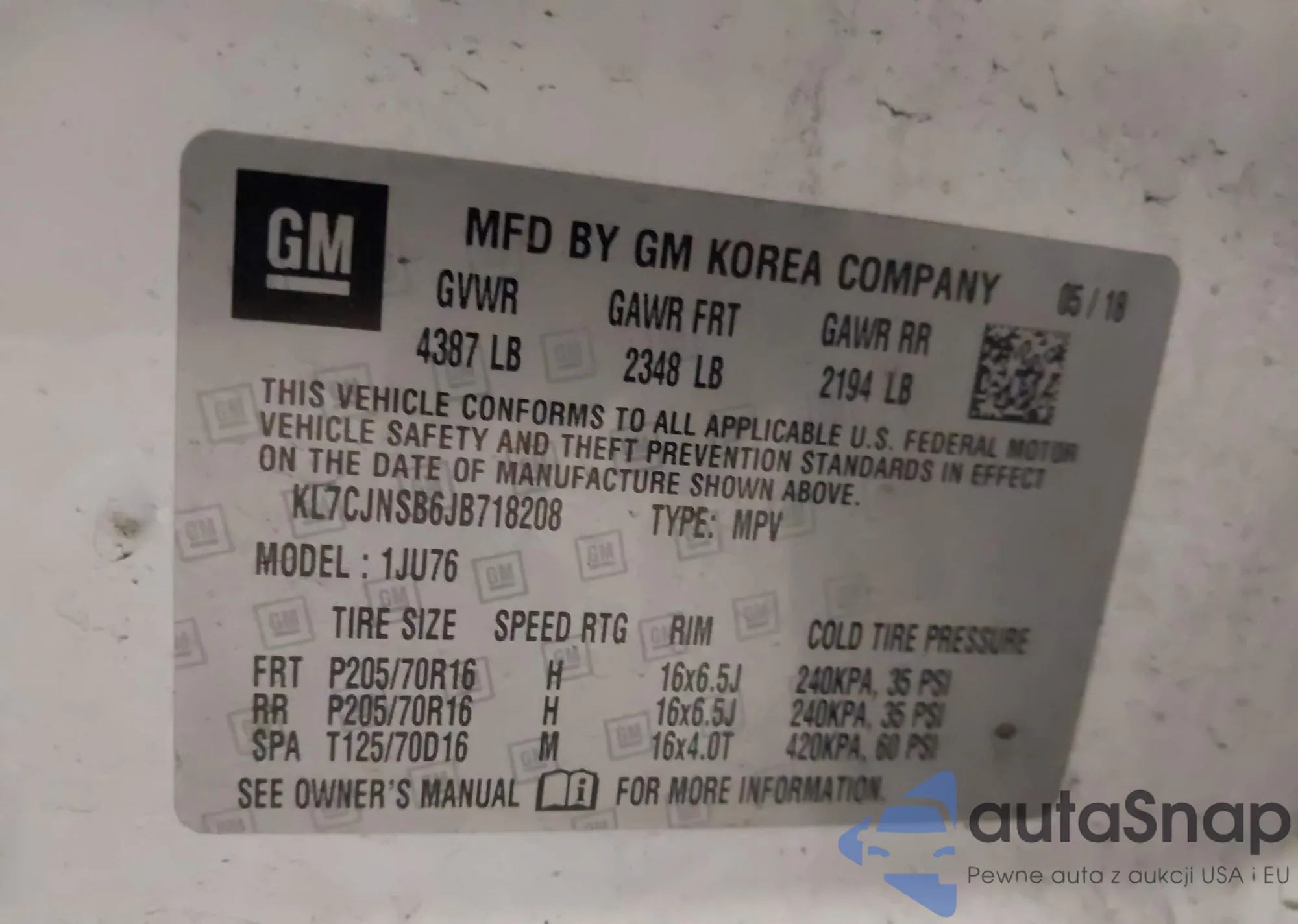 LOT: 41934347 VIN: KL7CJNSB6JB718208