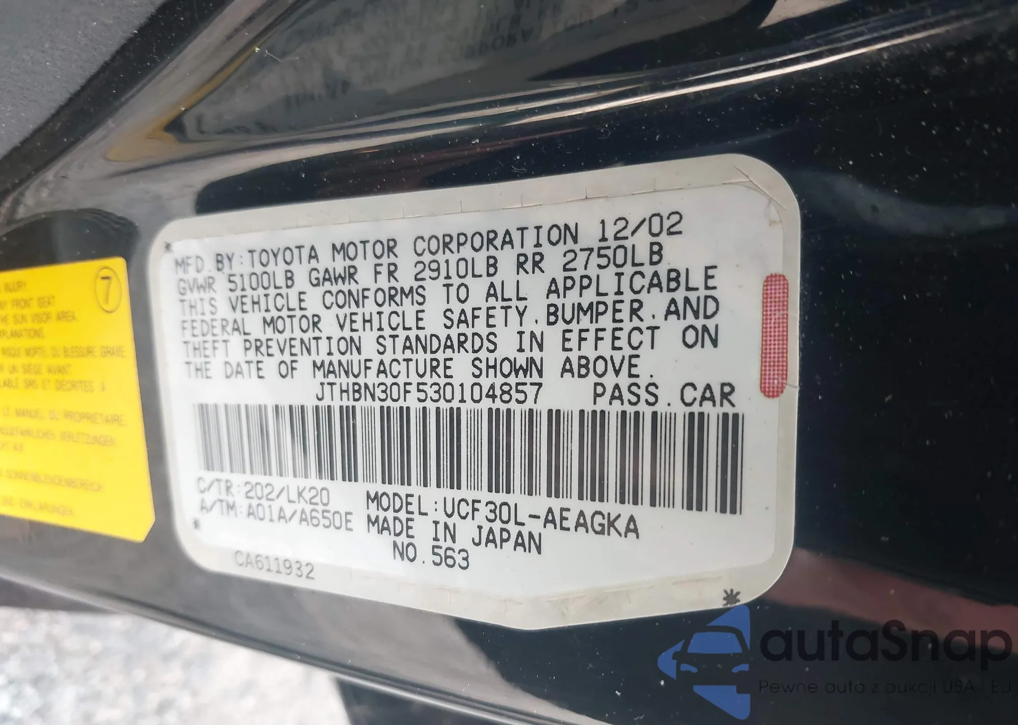 • VIN JTHBN30F530104857