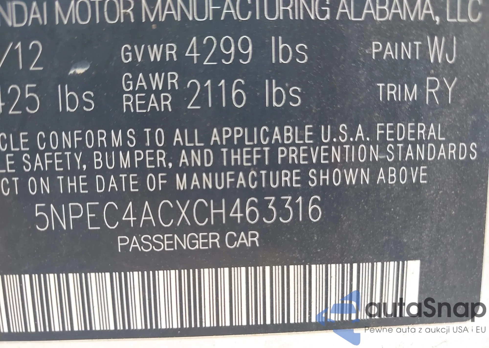 • VIN 5NPEC4ACXCH463316