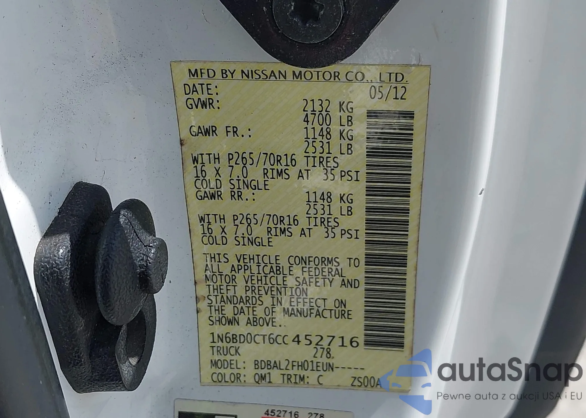 LOT: 42456431 VIN: 1N6BD0CT6CC452716