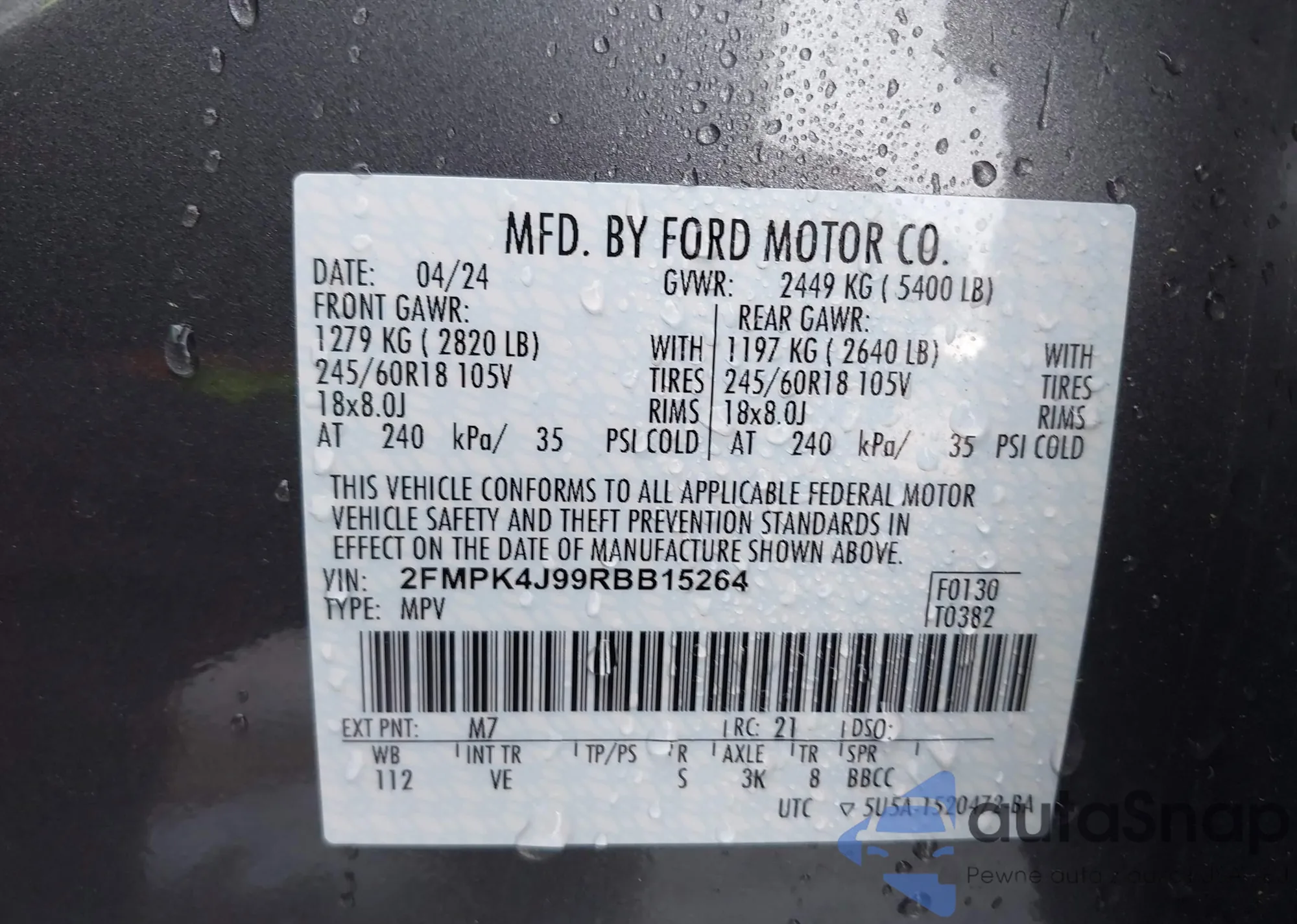 • VIN 2FMPK4J99RBB15264