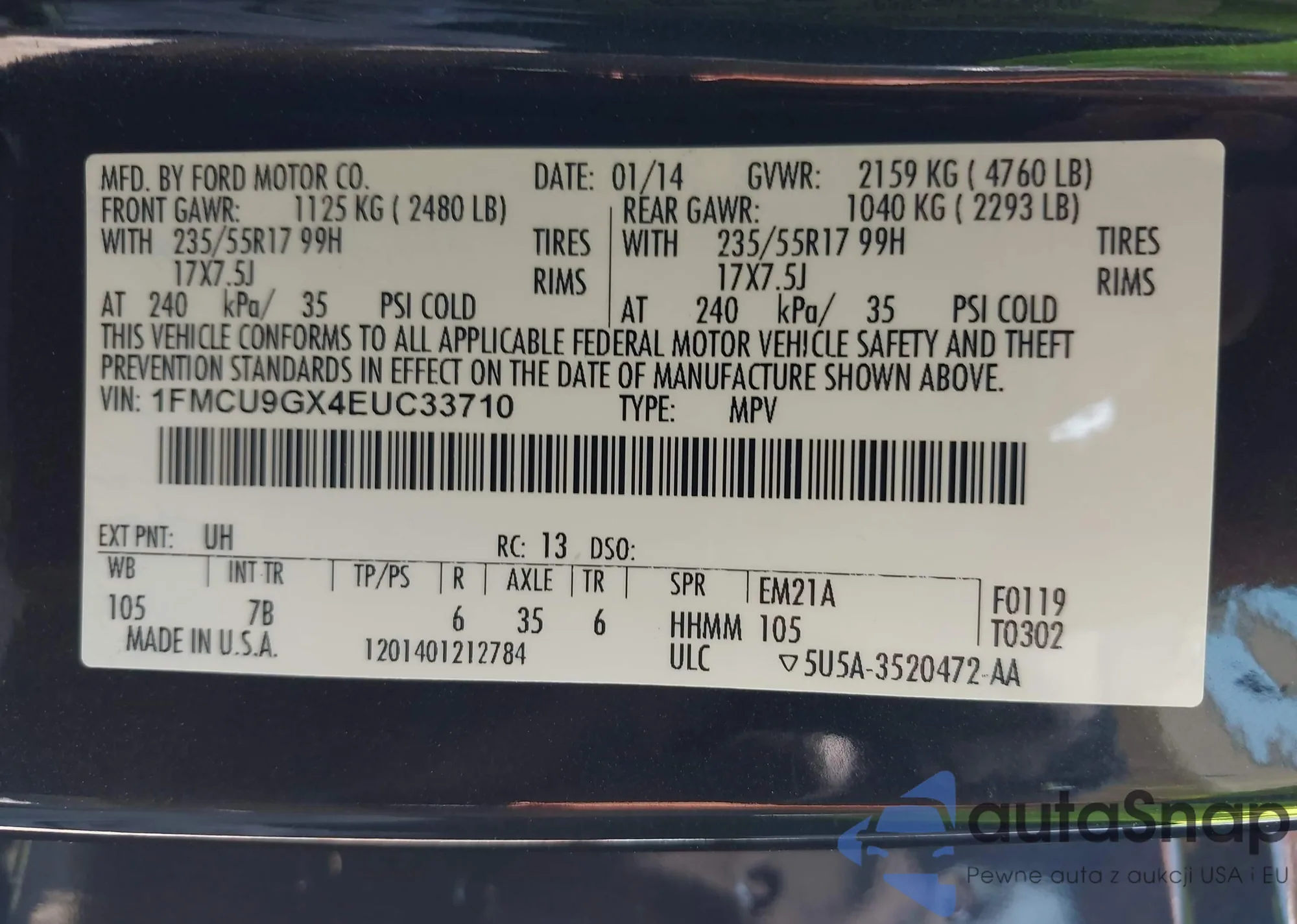 • VIN 1FMCU9GX4EUC33710