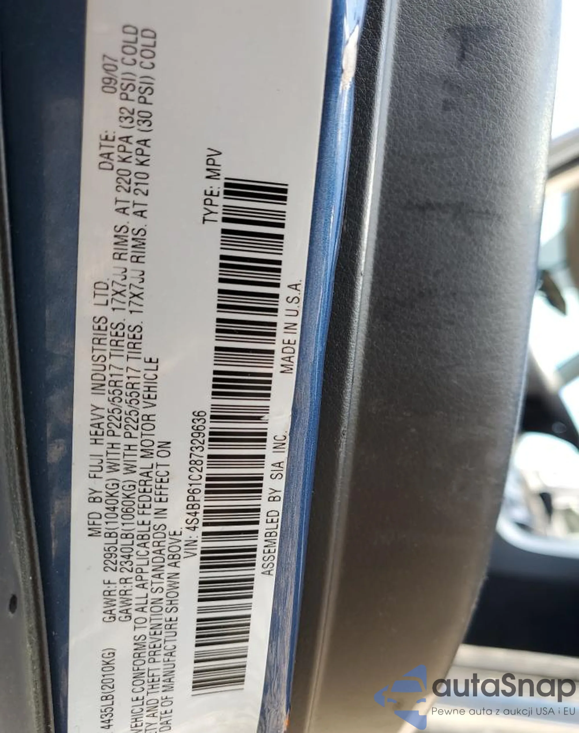• VIN 4T1BF3EK7AU531690