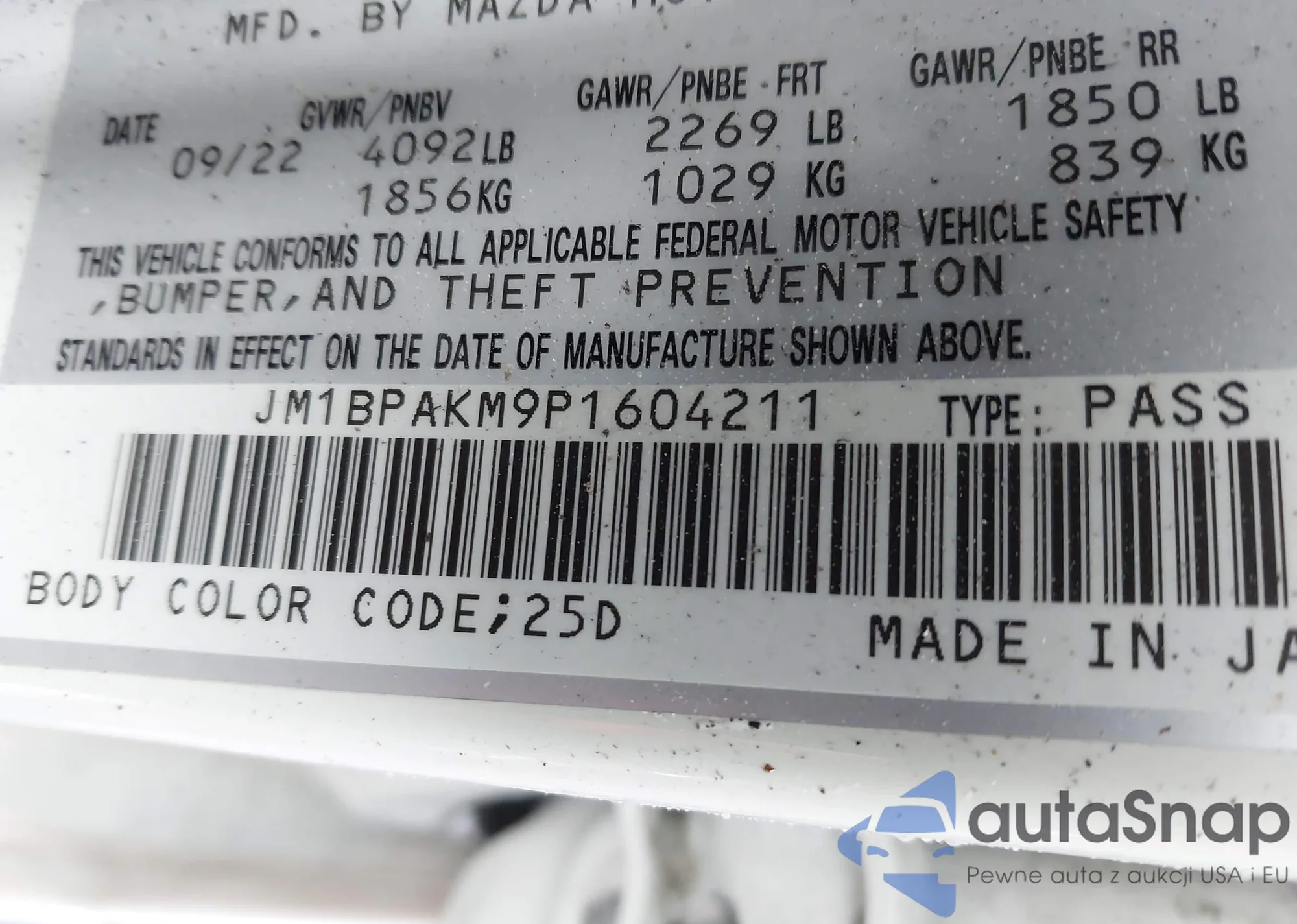 LOT: 42093424 VIN: JM1BPAKM9P1604211