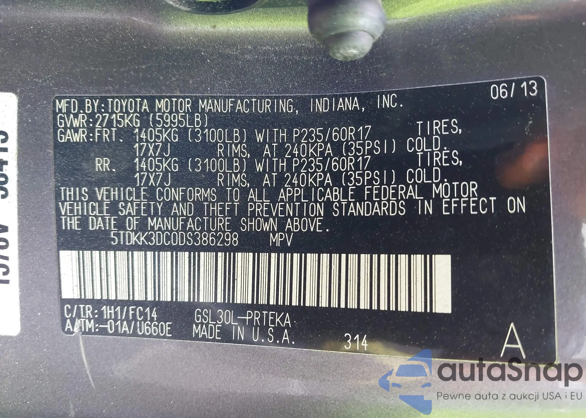 • VIN 5TDKK3DC0DS386298