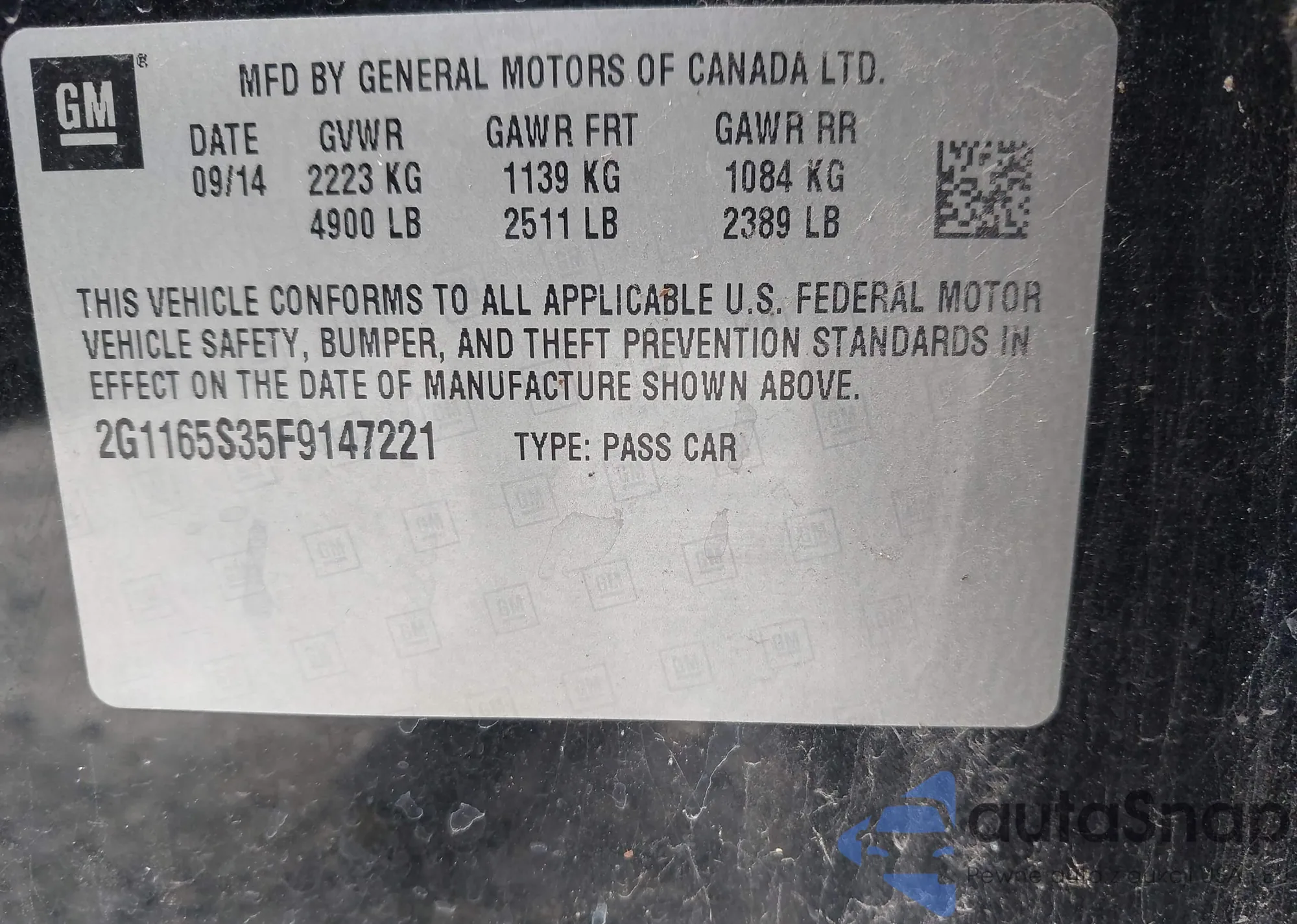 • VIN 2G11X5SL2E9241827