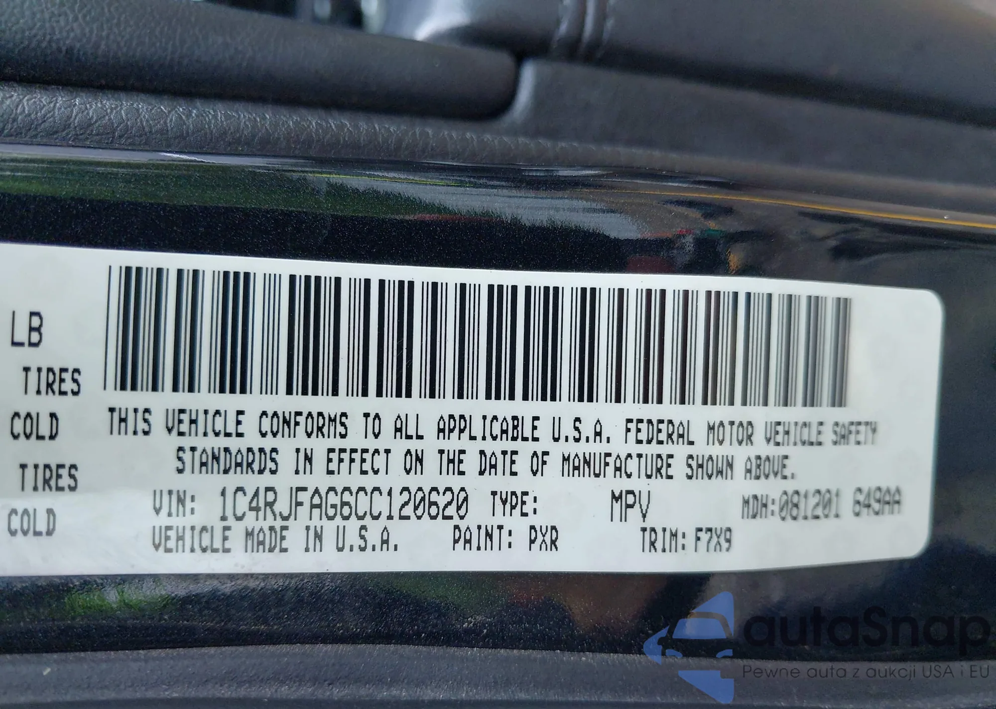 • VIN 1C4RJFAG6CC120620