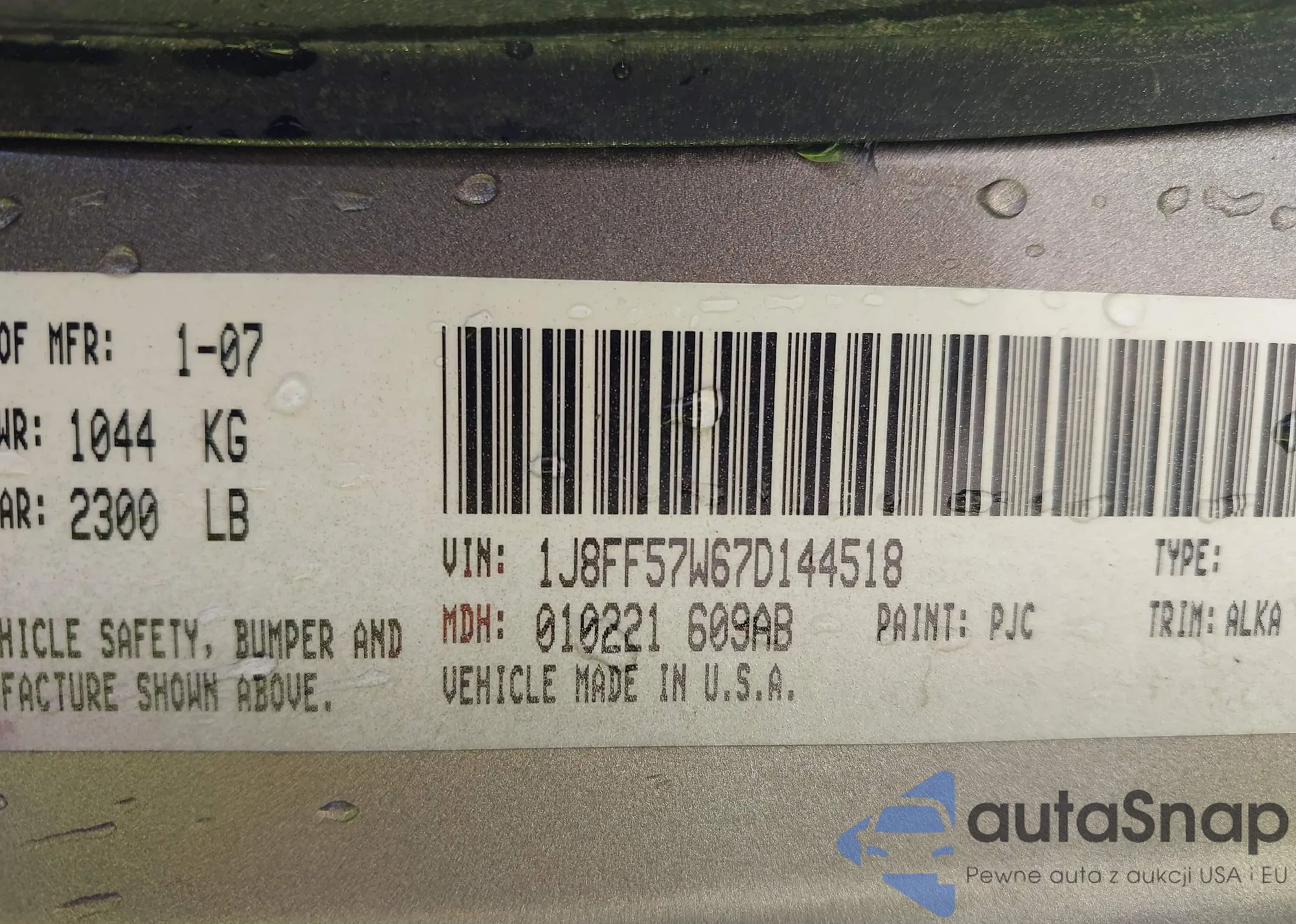 • VIN 1J8FF57W67D144518