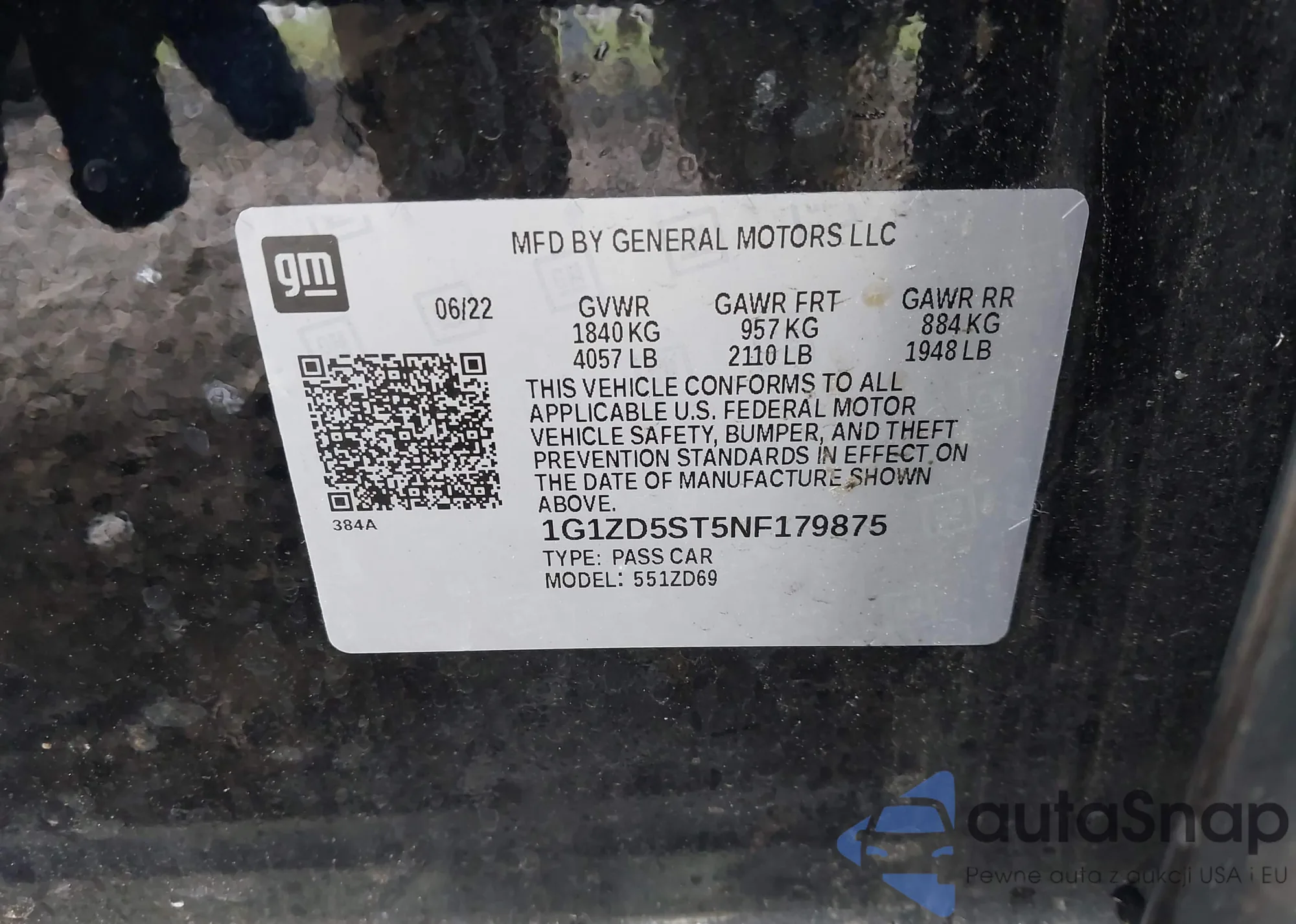 • VIN 1G1ZD5ST5NF179875