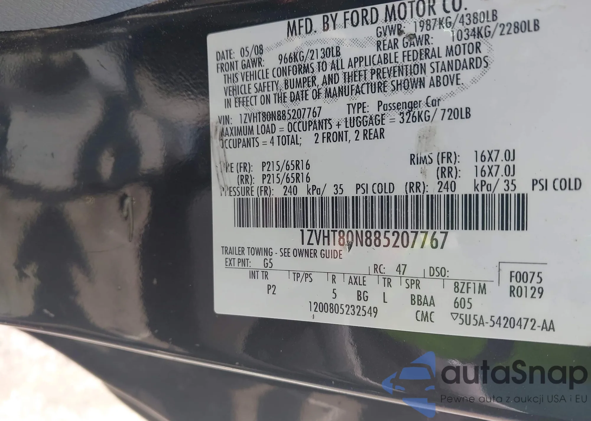 • VIN 1ZVHT80N885207767