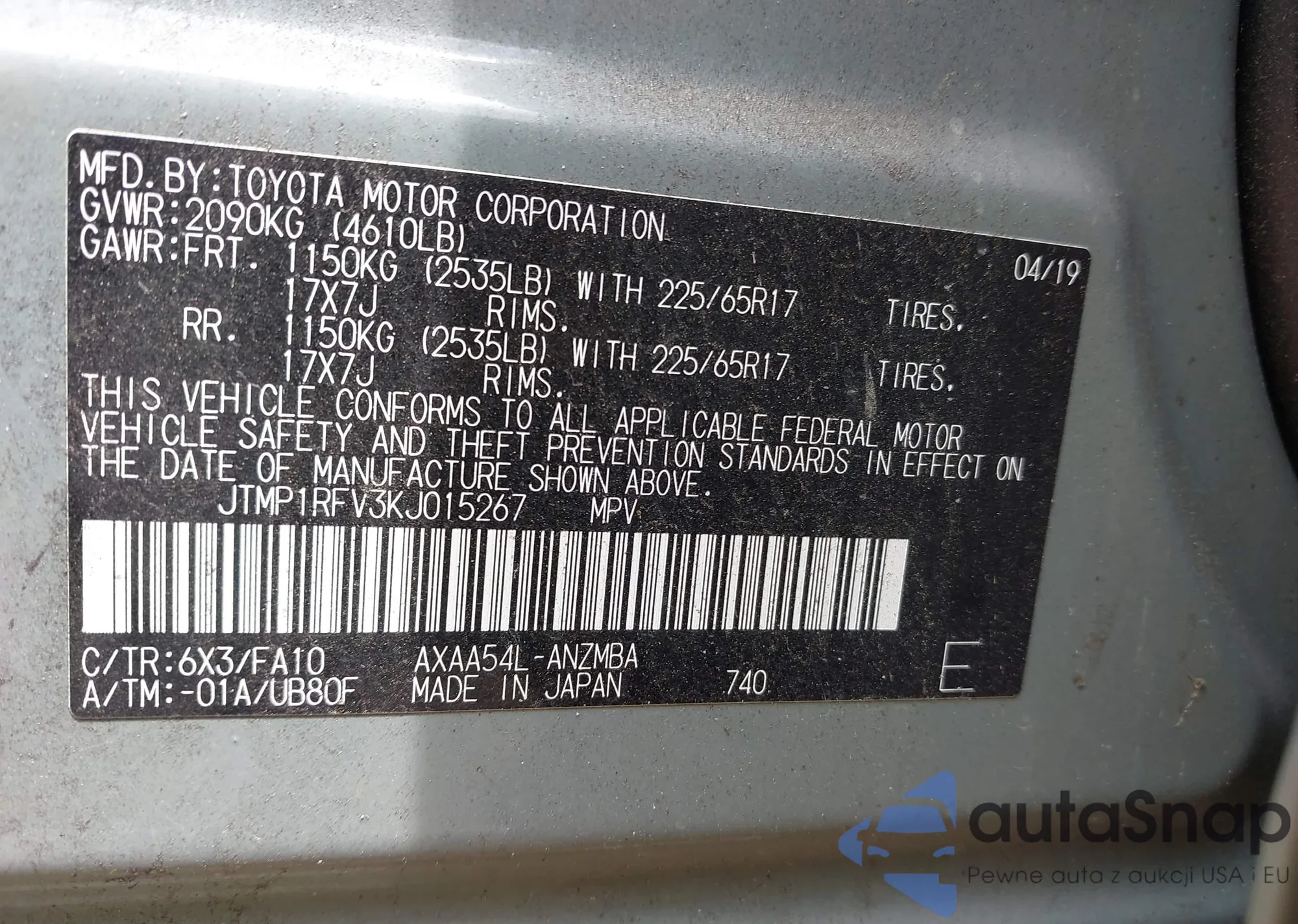 • VIN WP1AA2AY6KDA01777