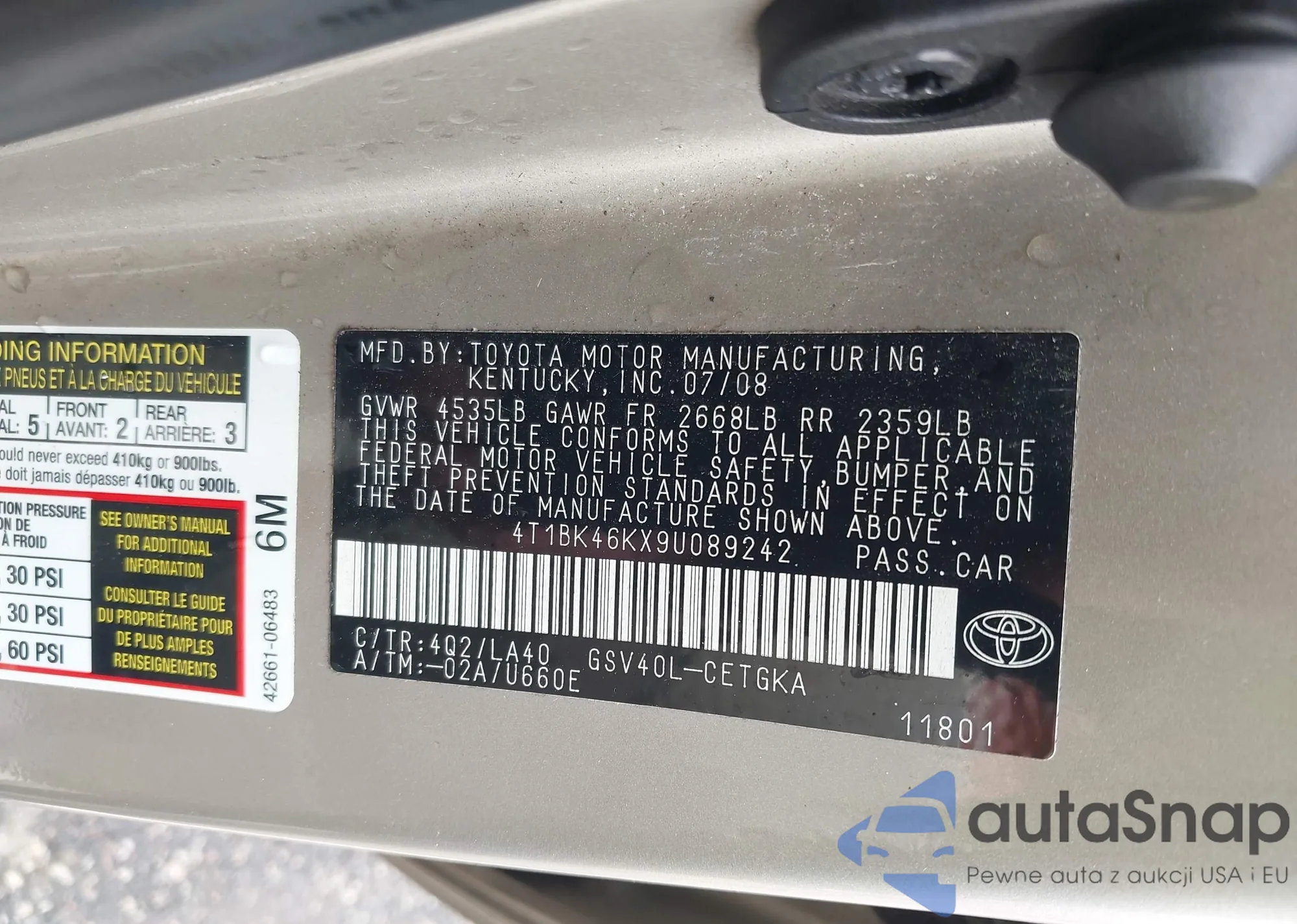 • VIN 4T1BK46KX9U089242