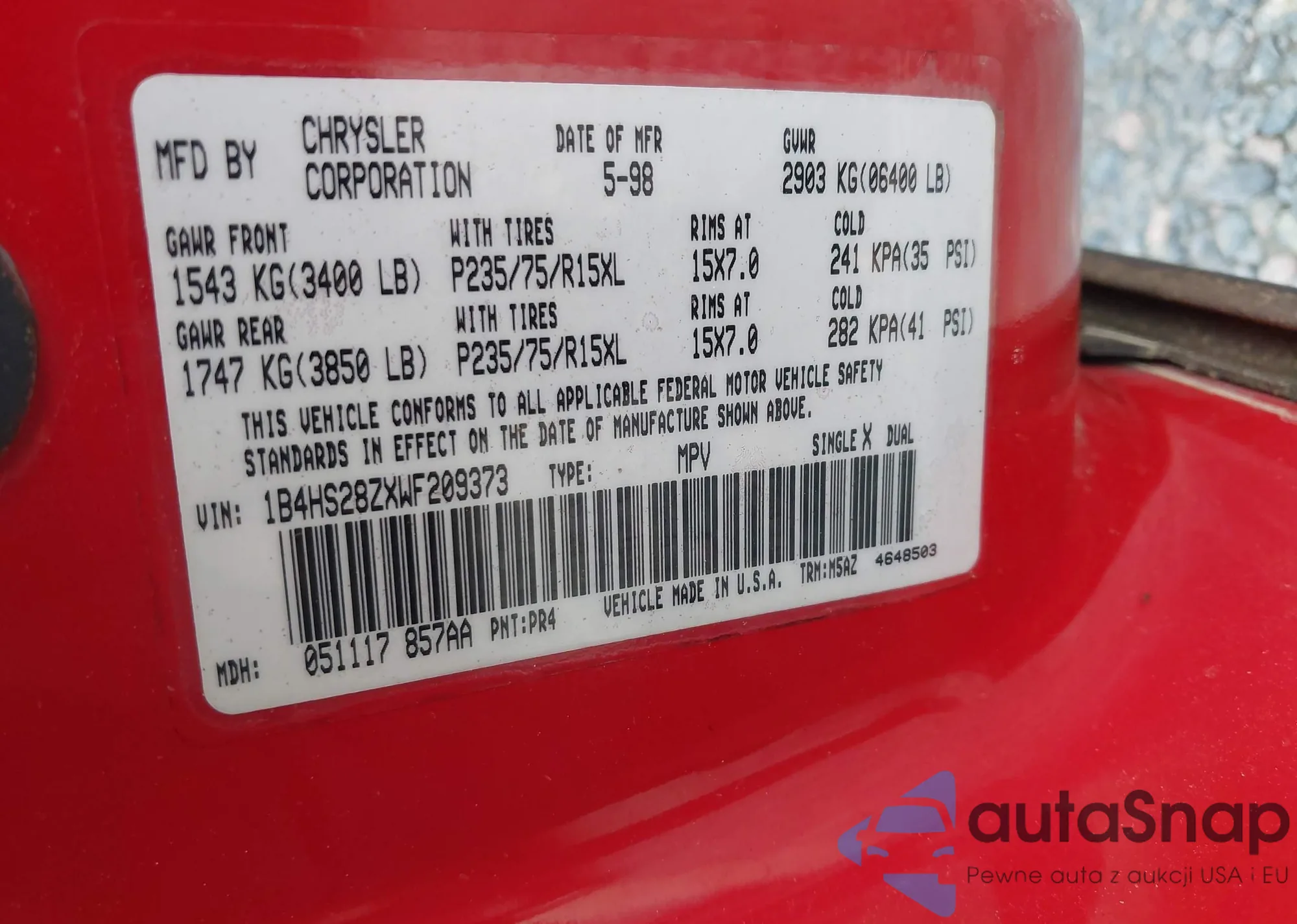 • VIN 1B4HS28ZXWF209373