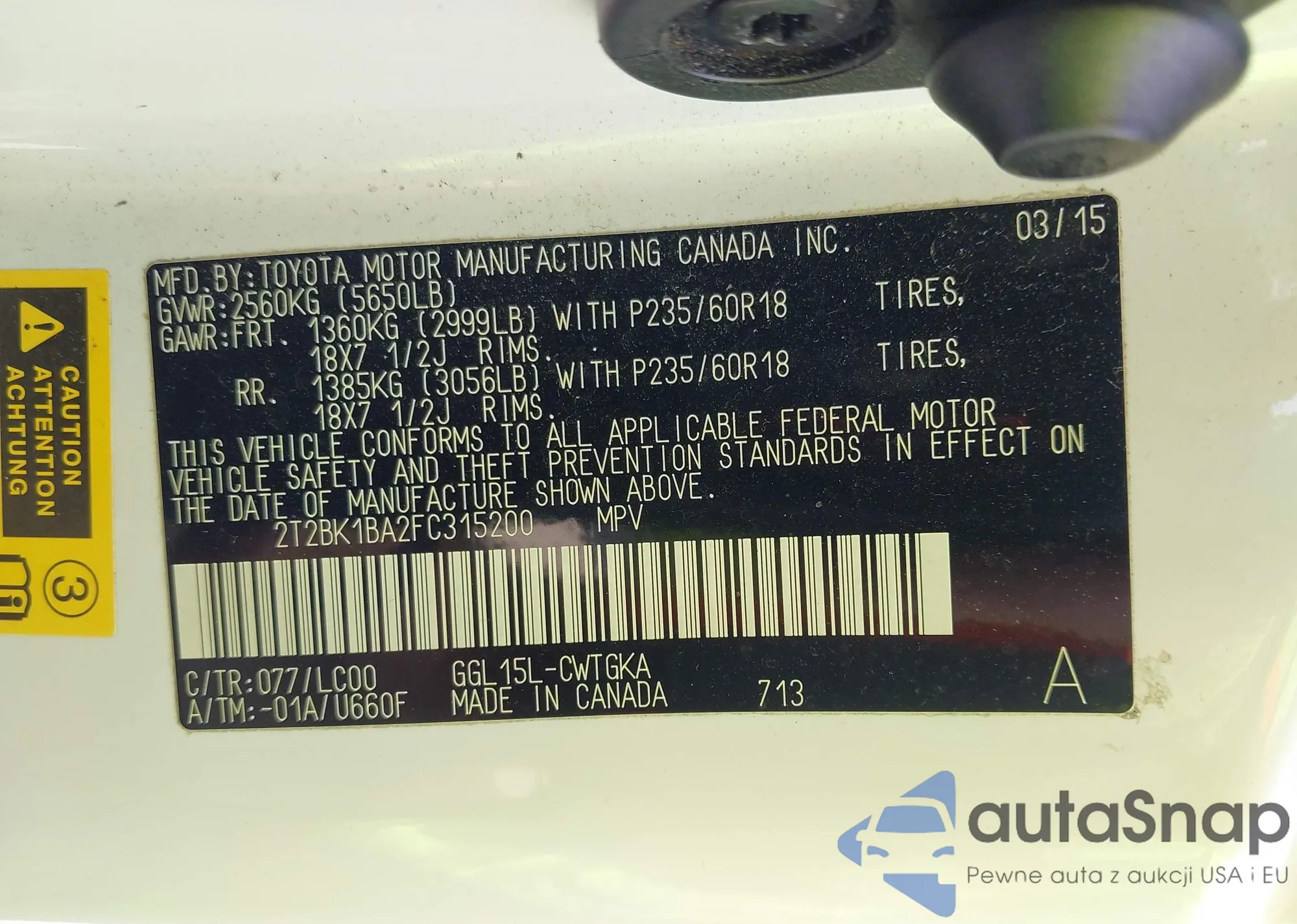 • VIN 2T2BK1BA2FC315200