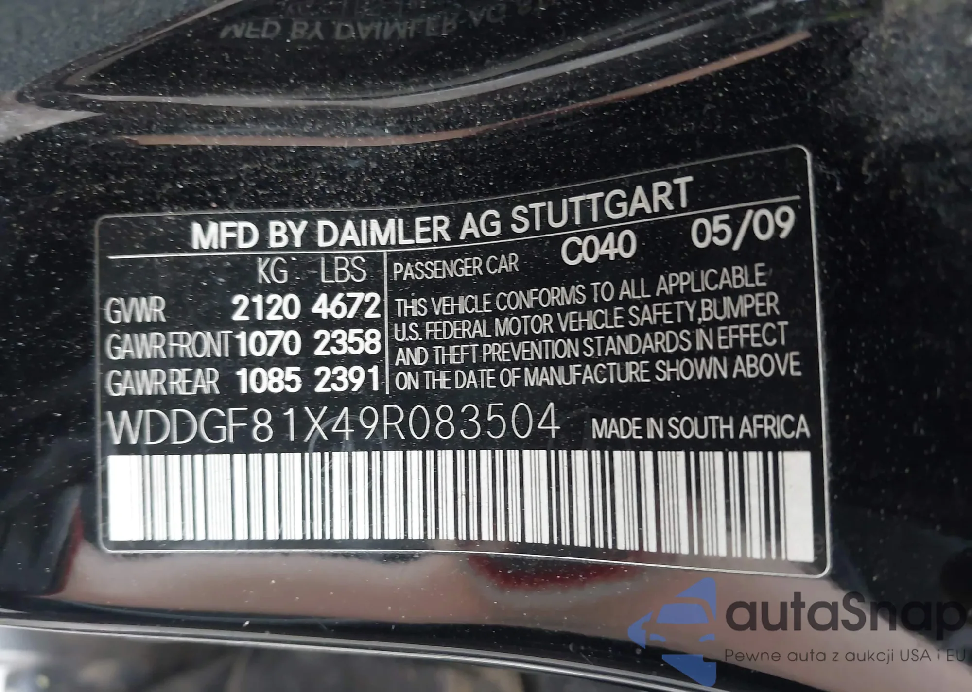• VIN WDDGF81X49R083504