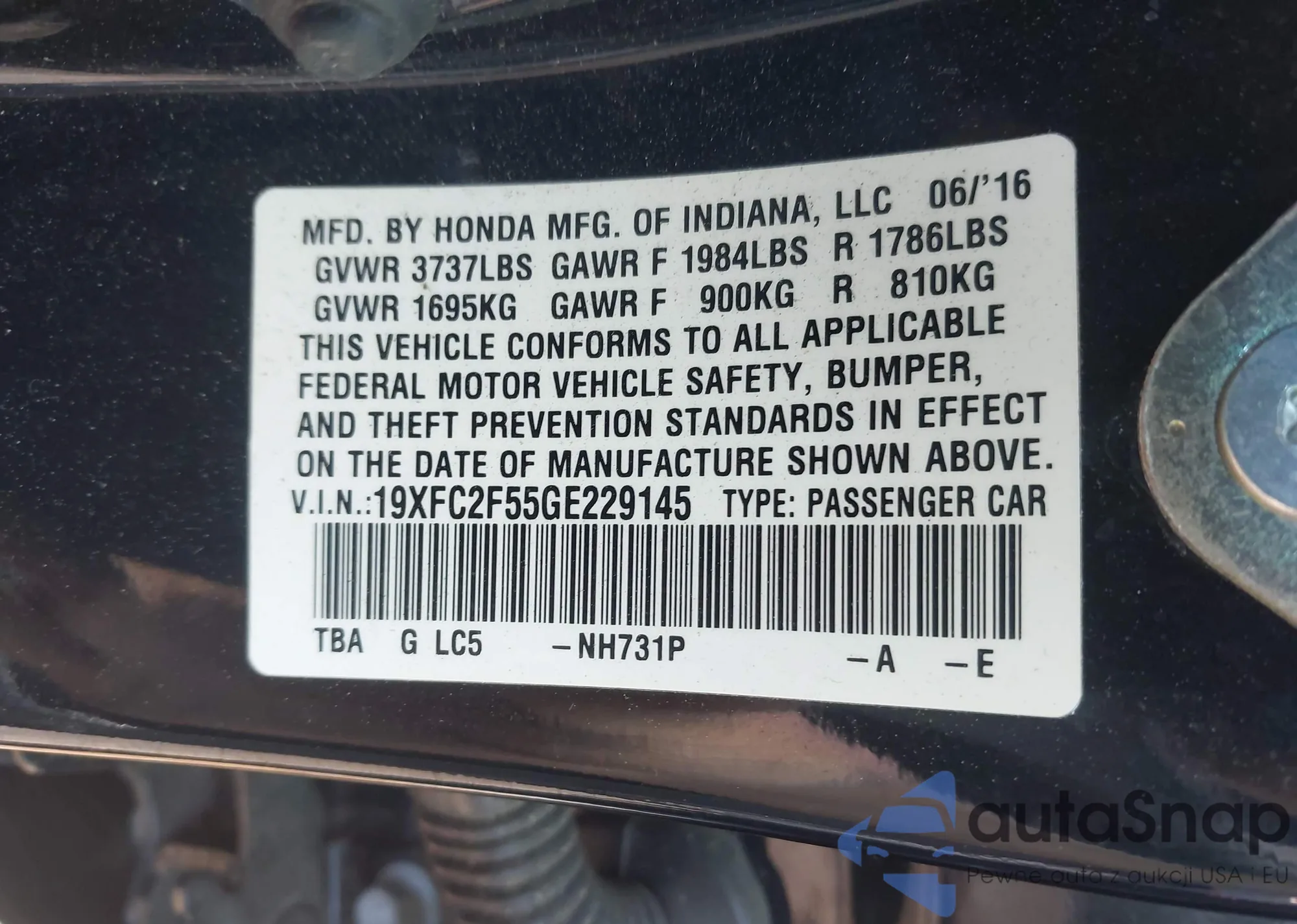 • VIN 19XFC2F55GE229145