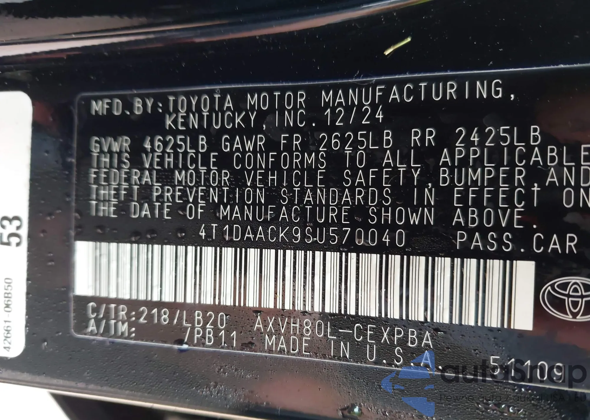 • VIN 4T1DAACK9SU570040