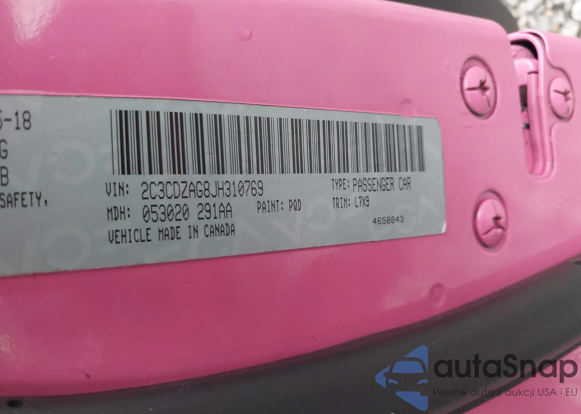 • VIN 2C3CDZAG8JH310769
