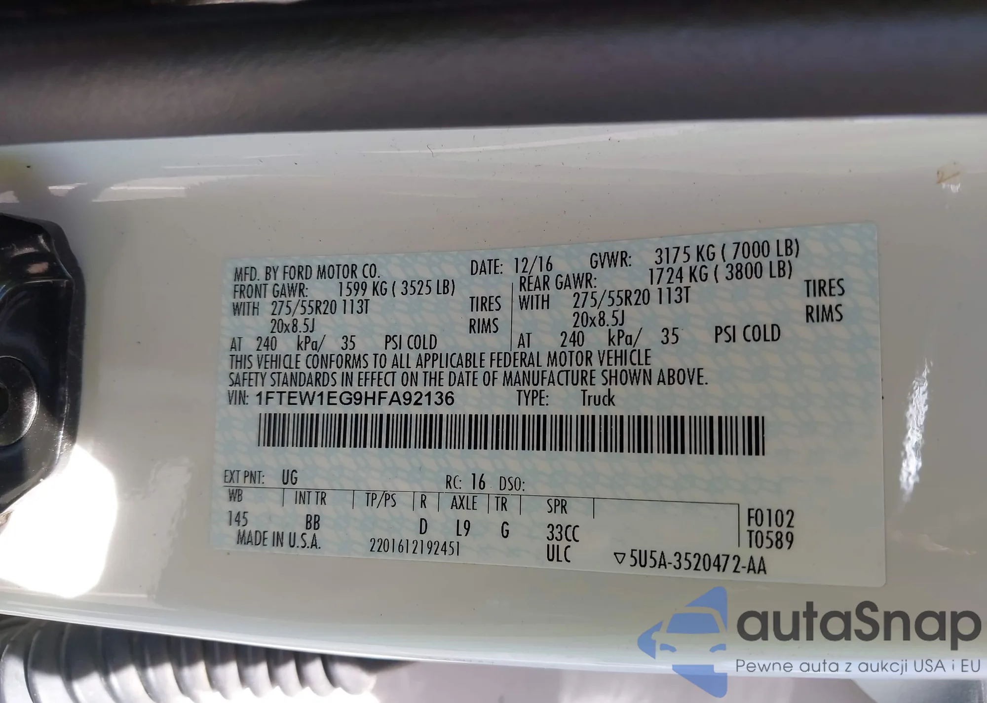 LOT: 42130690 VIN: 1FTEW1EG9HFA92136
