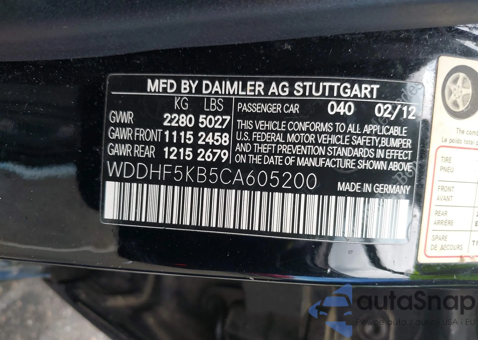 • VIN WDDHF5KB5CA605200