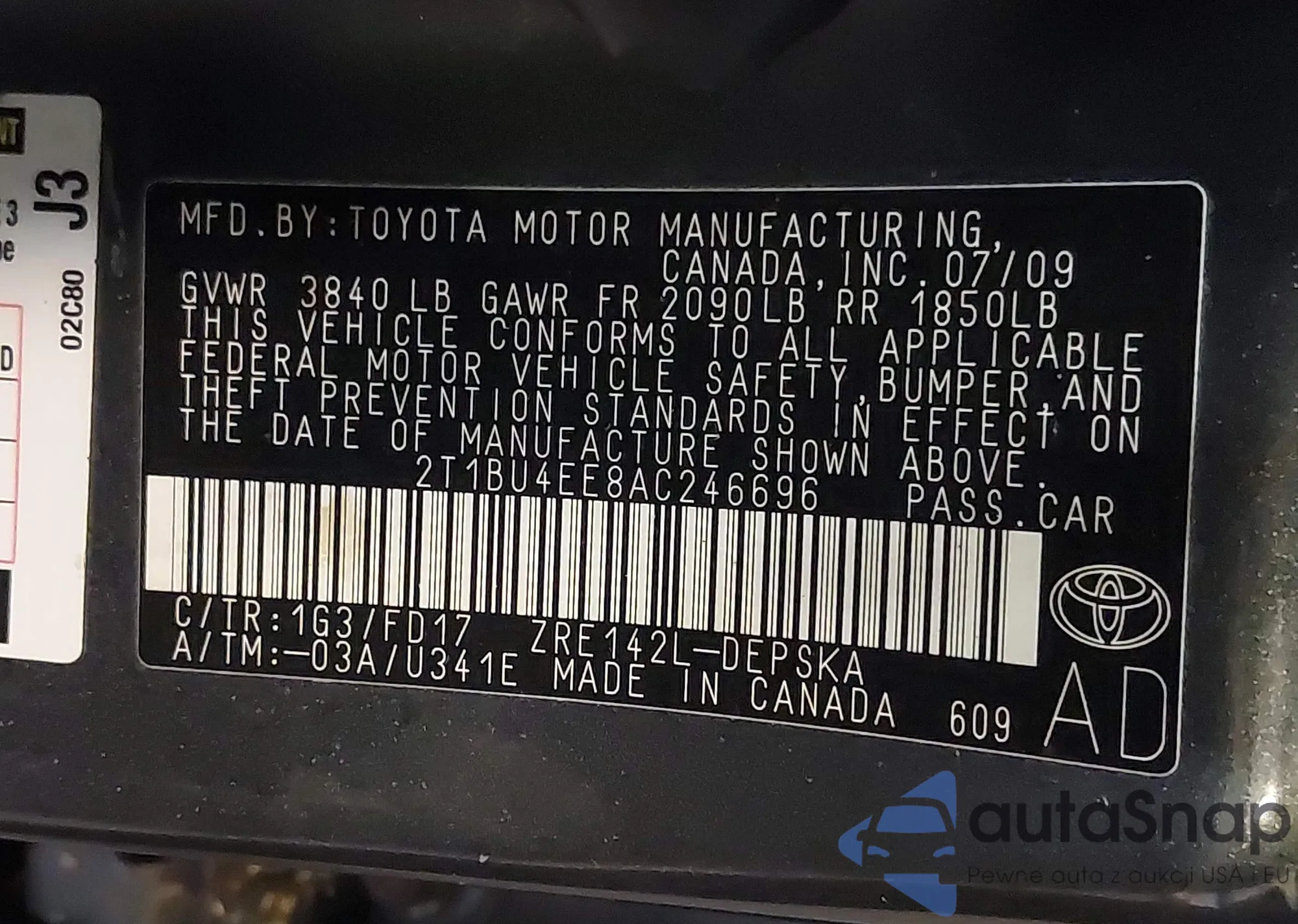 • VIN 2T1BU4EE8AC246696
