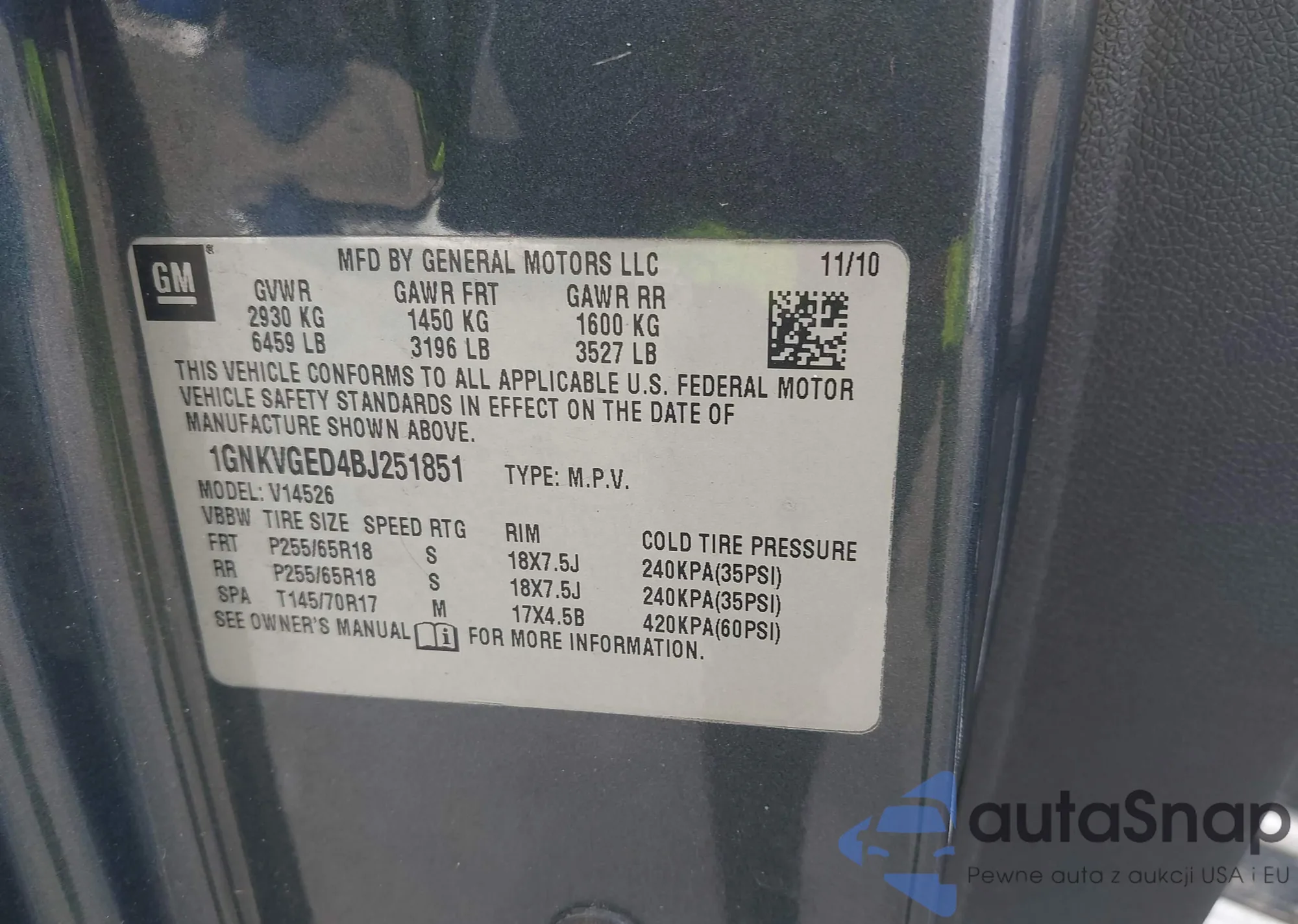 LOT: 42305952 VIN: 1GNKVGED4BJ251851