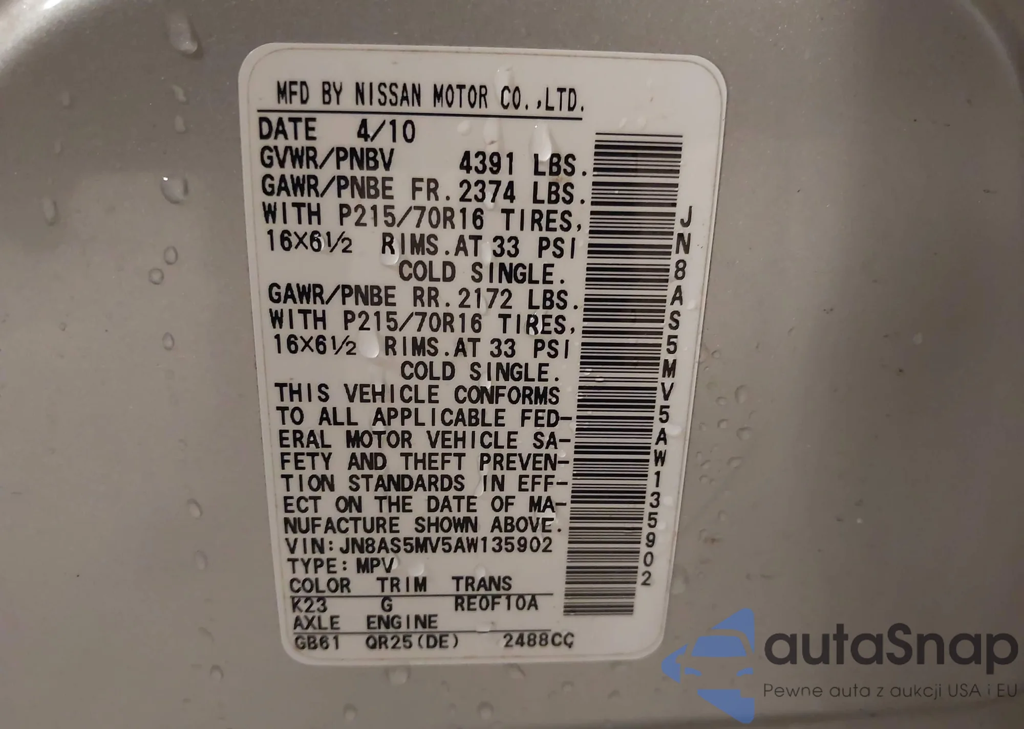 • VIN JN8AS5MV5AW135902