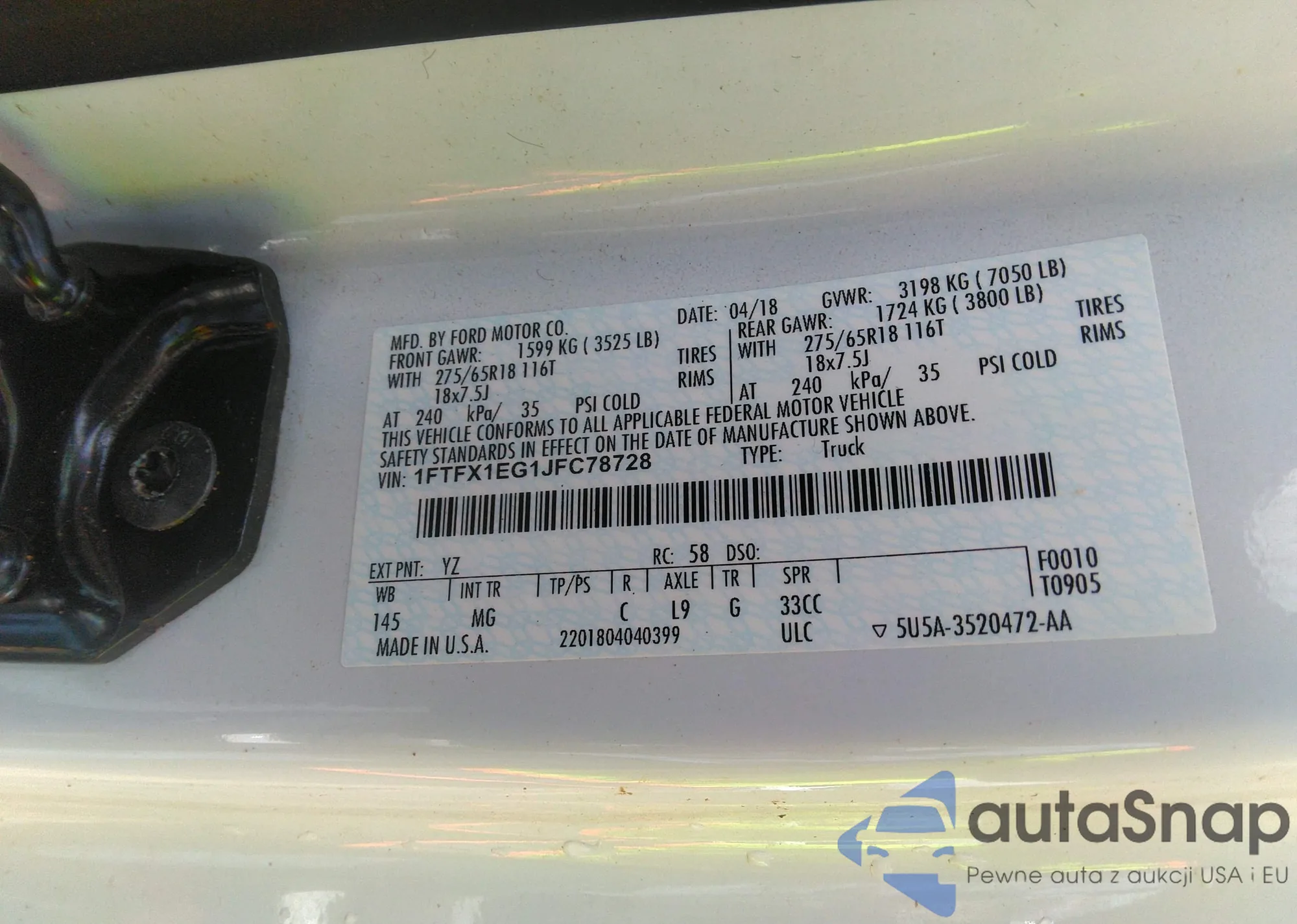 LOT: 42243040 VIN: 1FTFX1EG1JFC78728