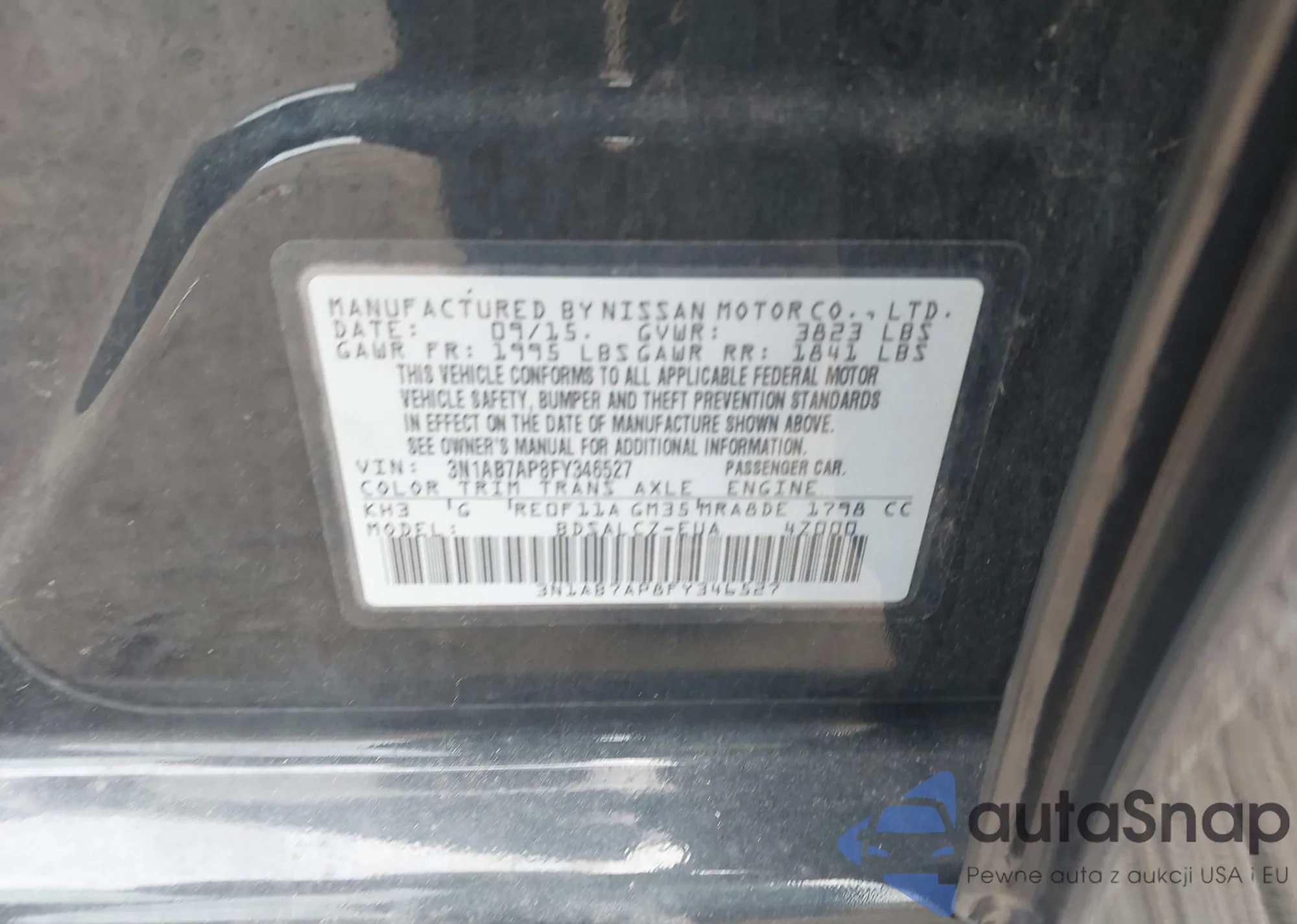 • VIN 3N1AB7AP8FY346527