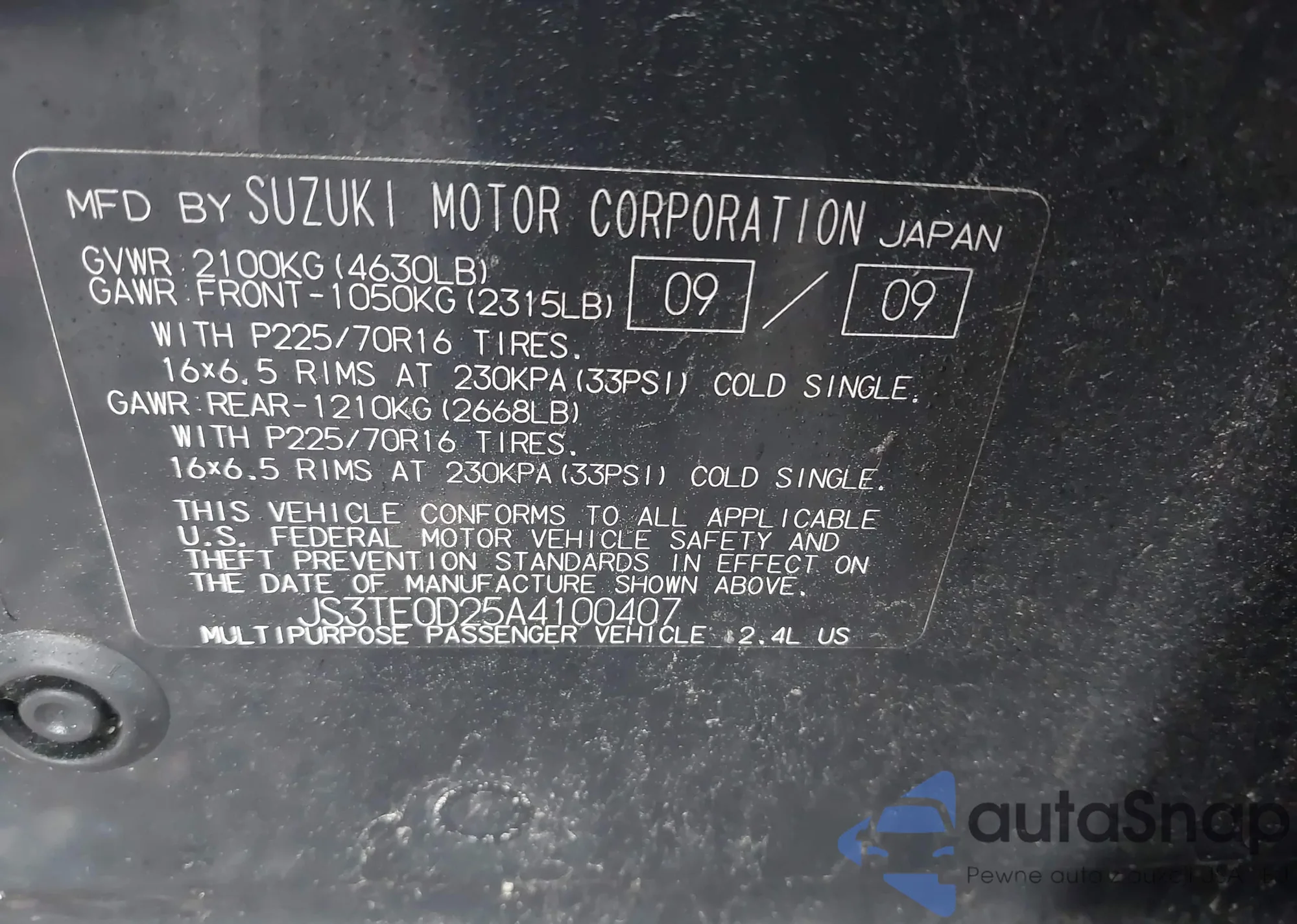 • VIN 1NXBU4EE9AZ377876