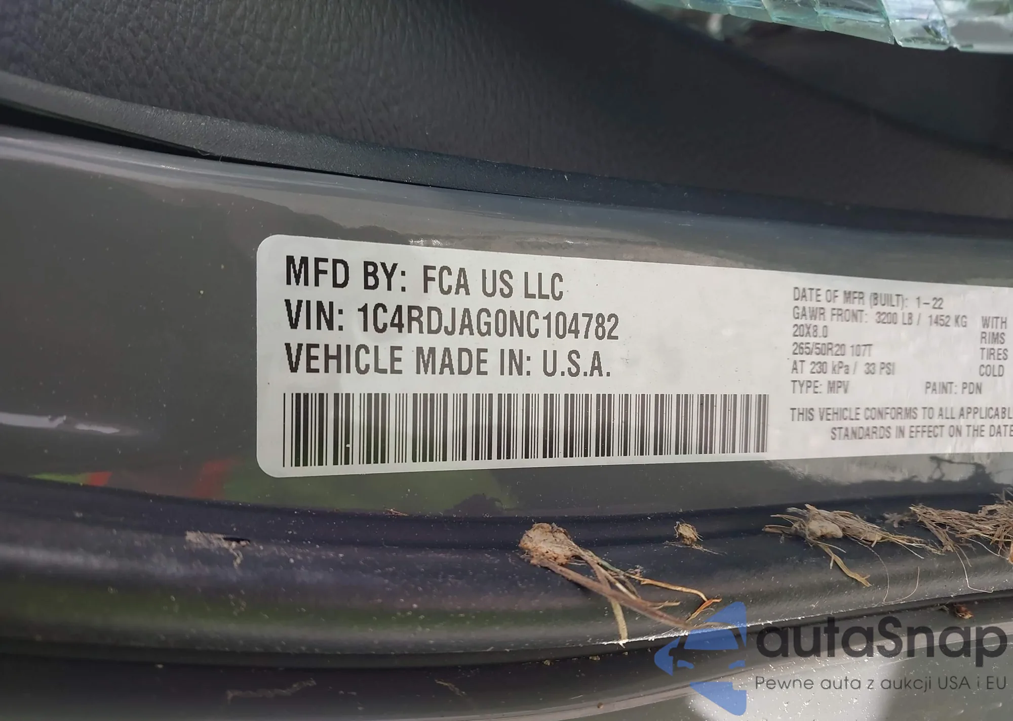 • VIN 1C4RDJAG0NC104782
