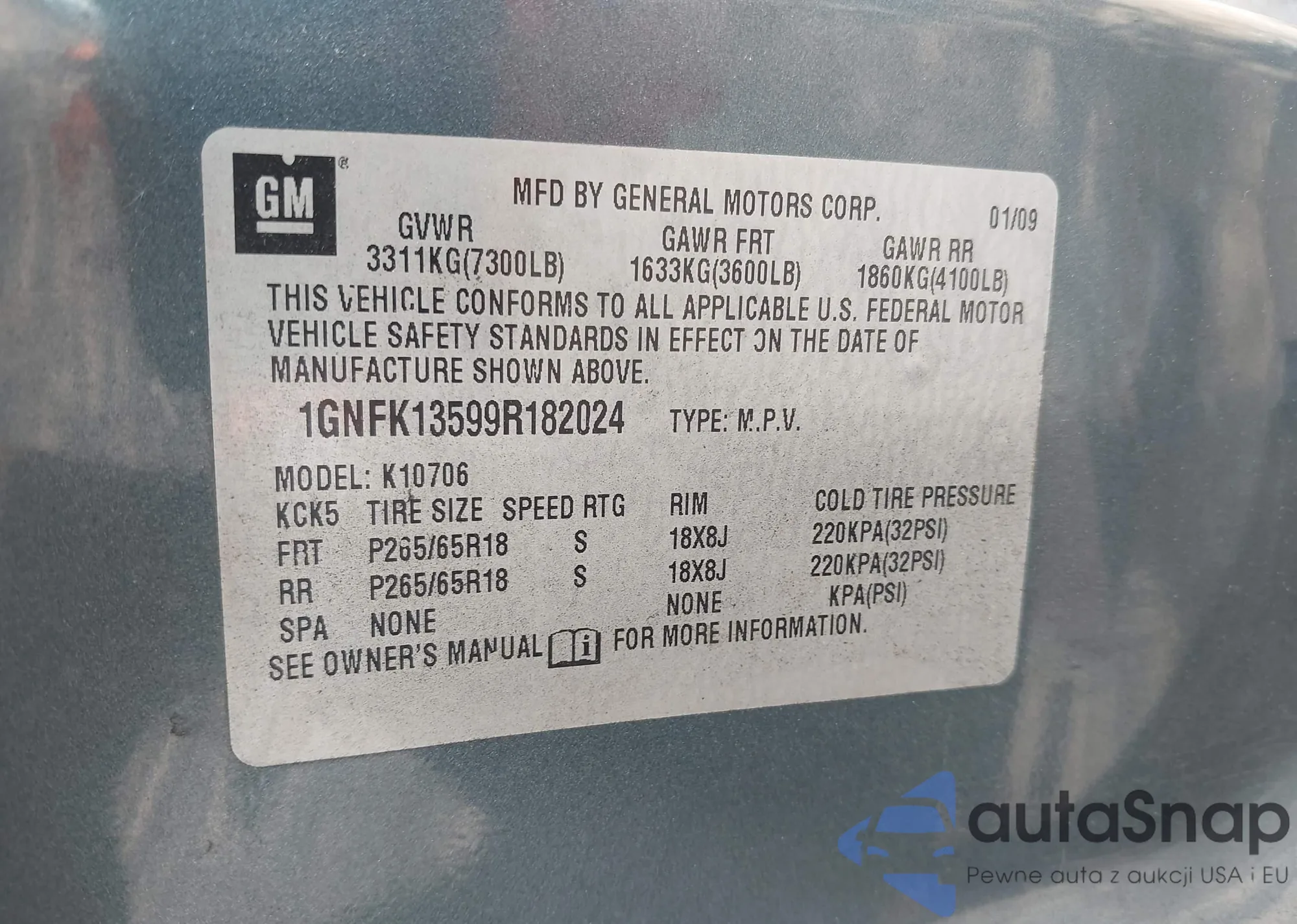 LOT: 42436900 VIN: 1GNFK13599R182024