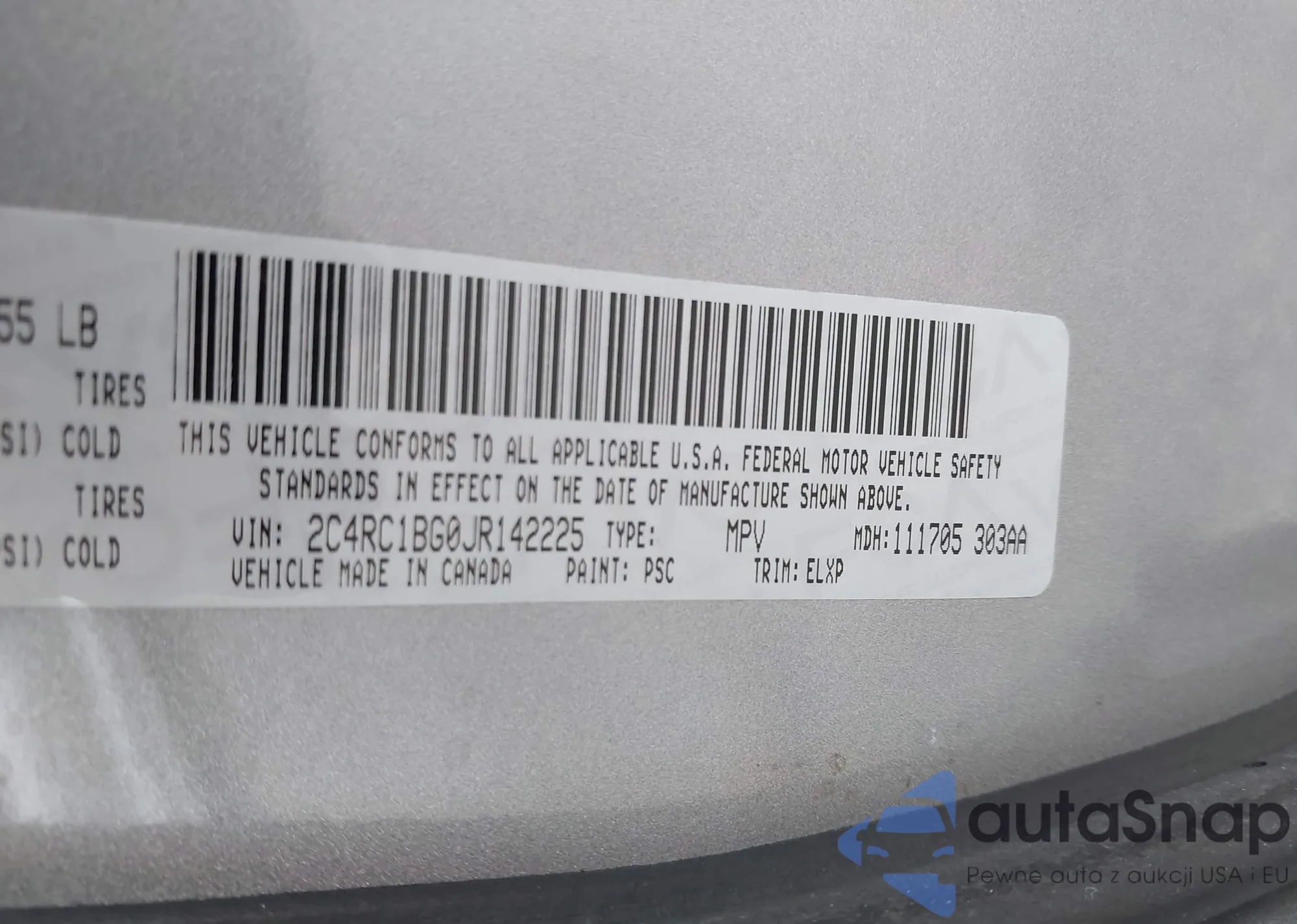 • VIN 2C4RC1BG0JR142225