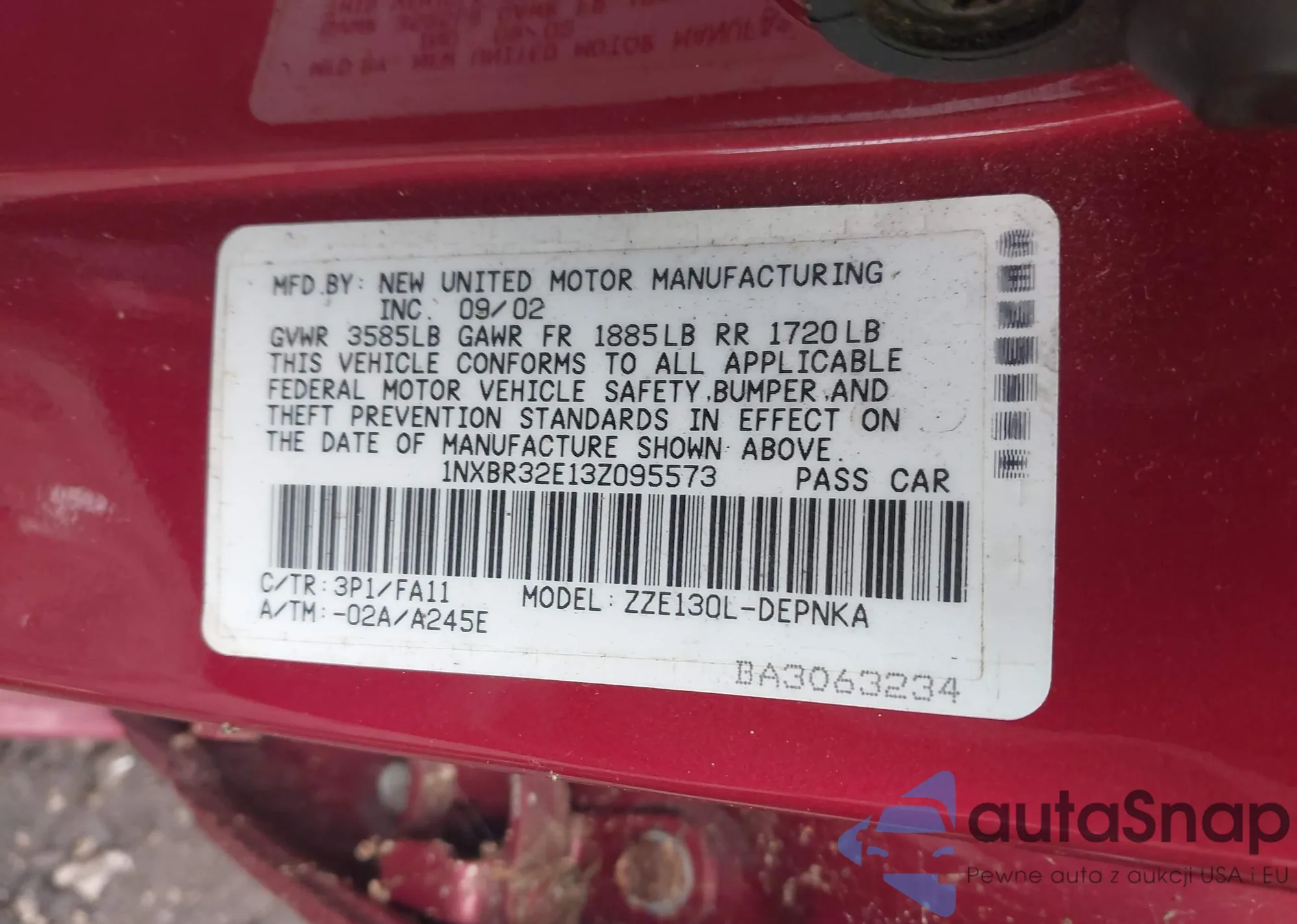 LOT: 42457480 VIN: 1NXBR32E13Z095573