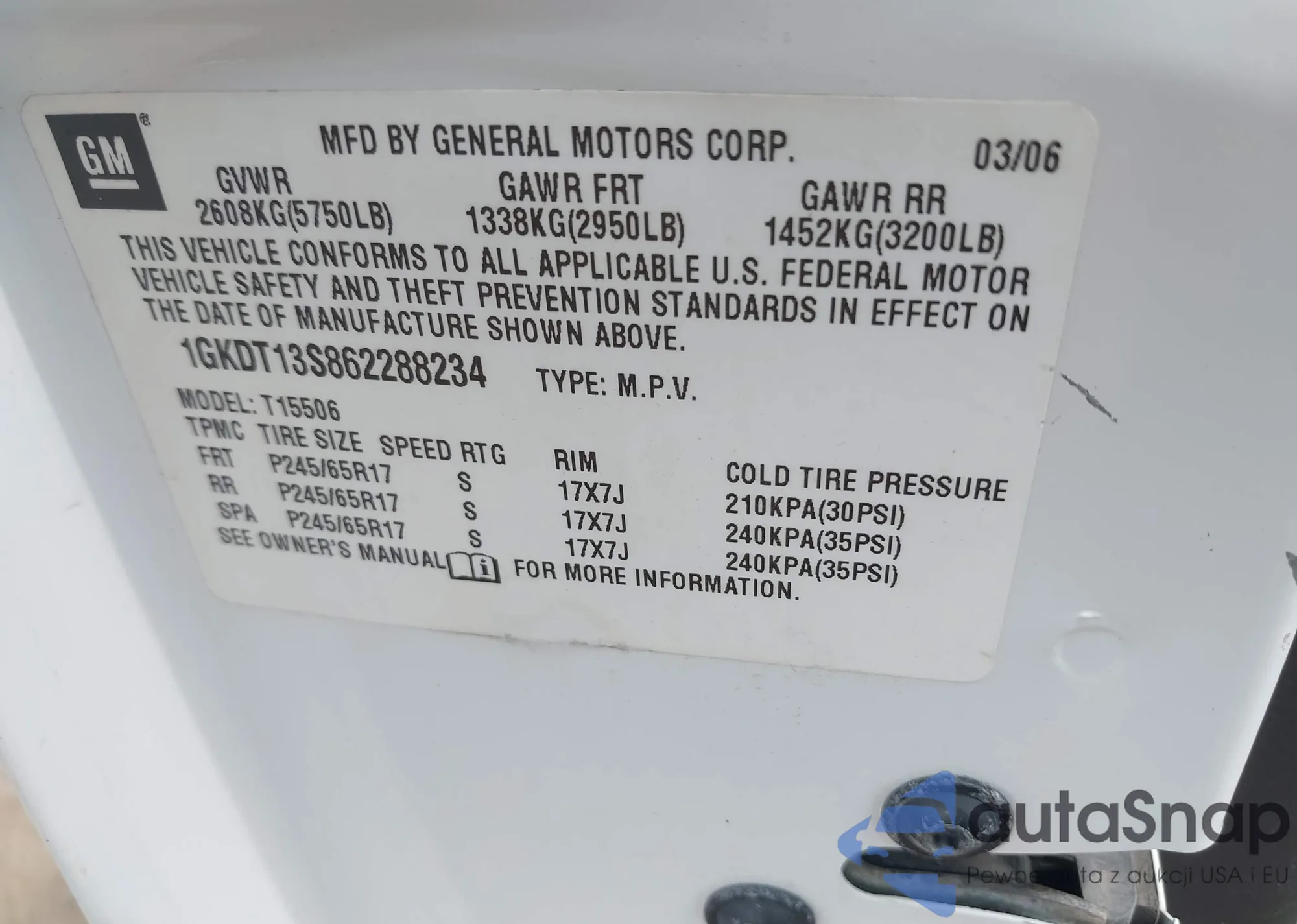 • VIN 1GKKVPKD5FJ330257