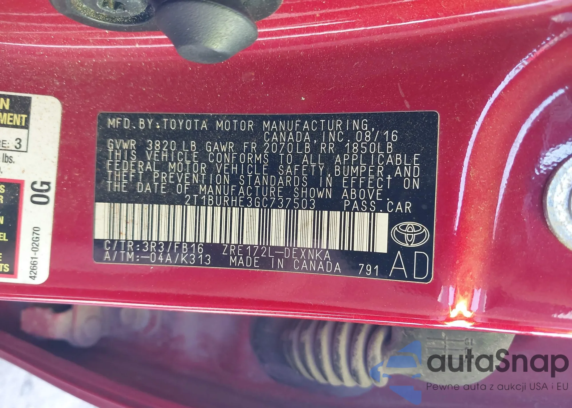 • VIN 2T1BURHE3GC737503