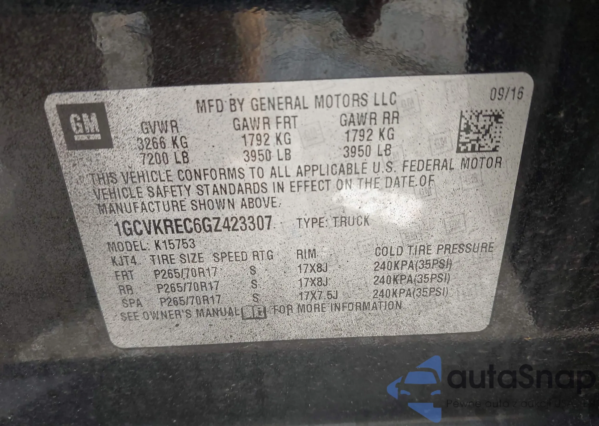 LOT: 42263055 VIN: 1GCVKREC6GZ423307