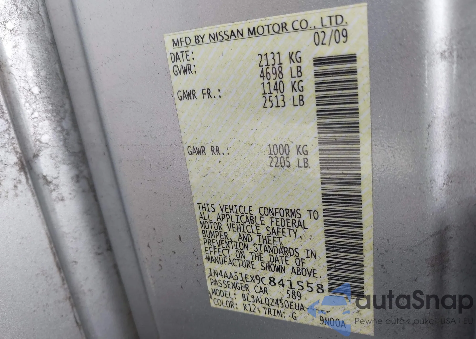 LOT: 42351978 VIN: 1N4AA51EX9C841558