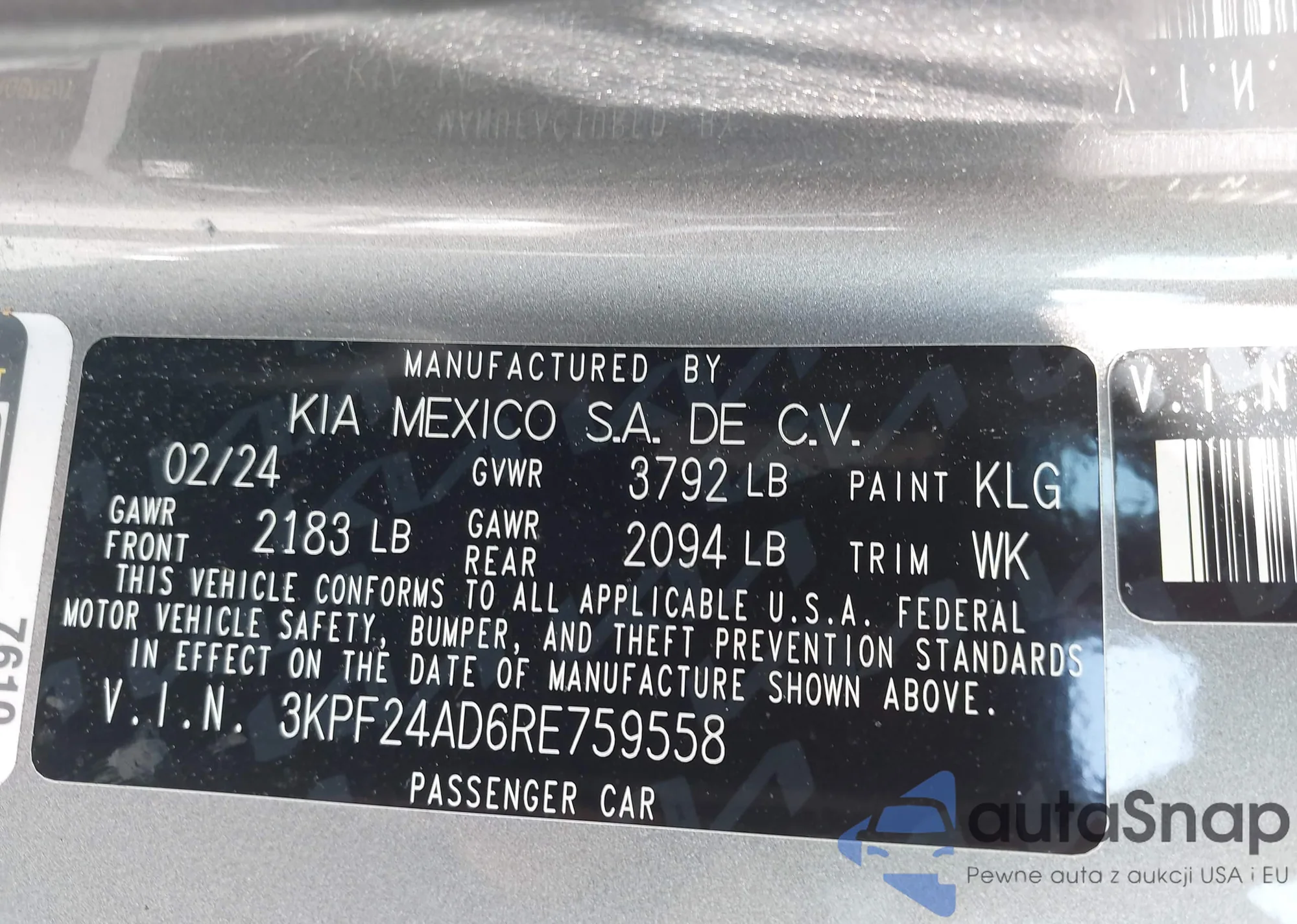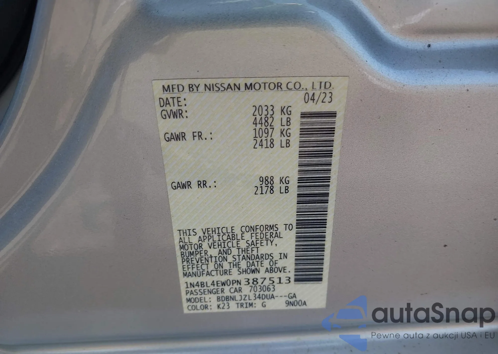 LOT: 42164255 VIN: 1N4BL4EW0PN387513