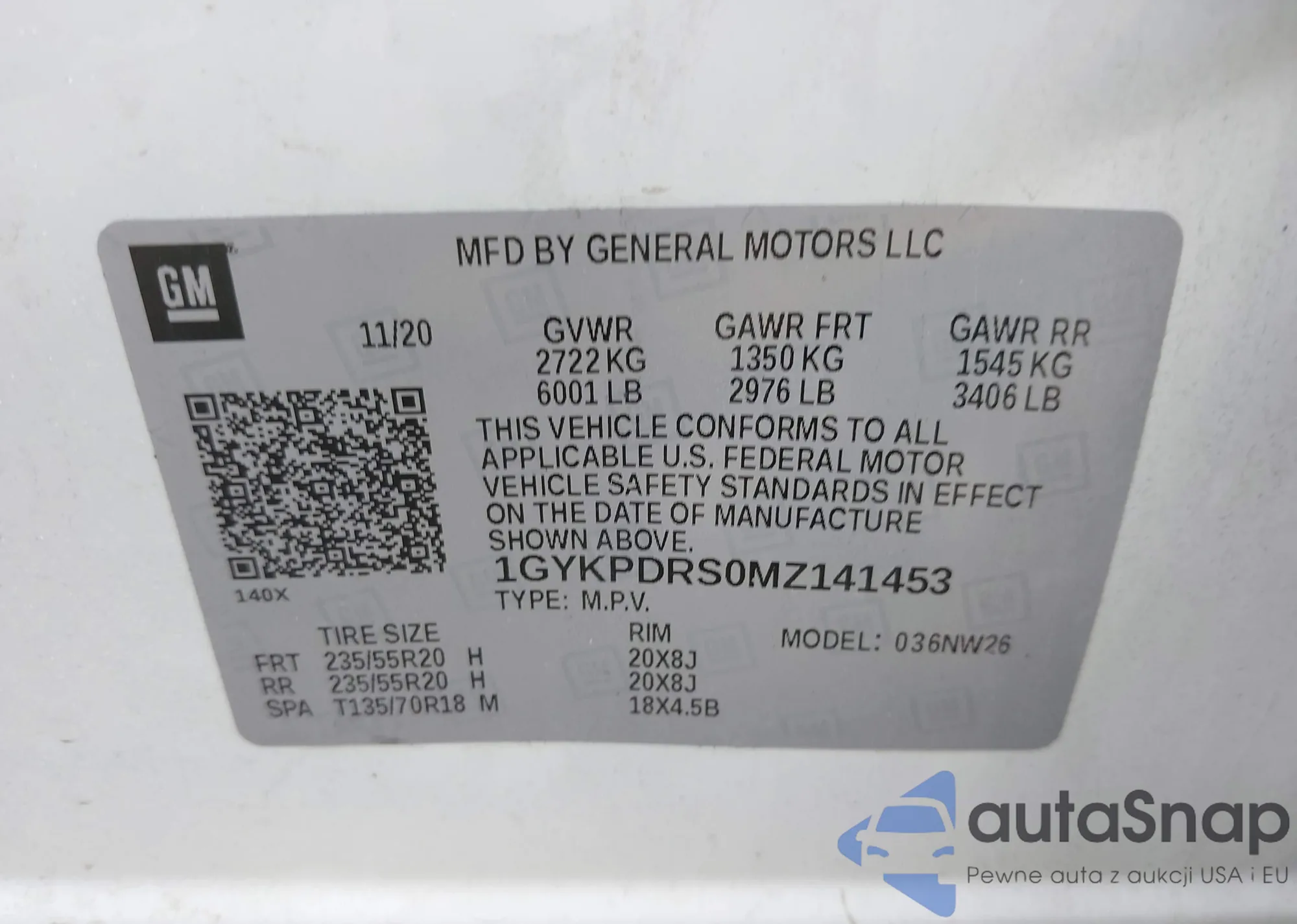 LOT: 42215954 VIN: 1GYKPDRS0MZ141453
