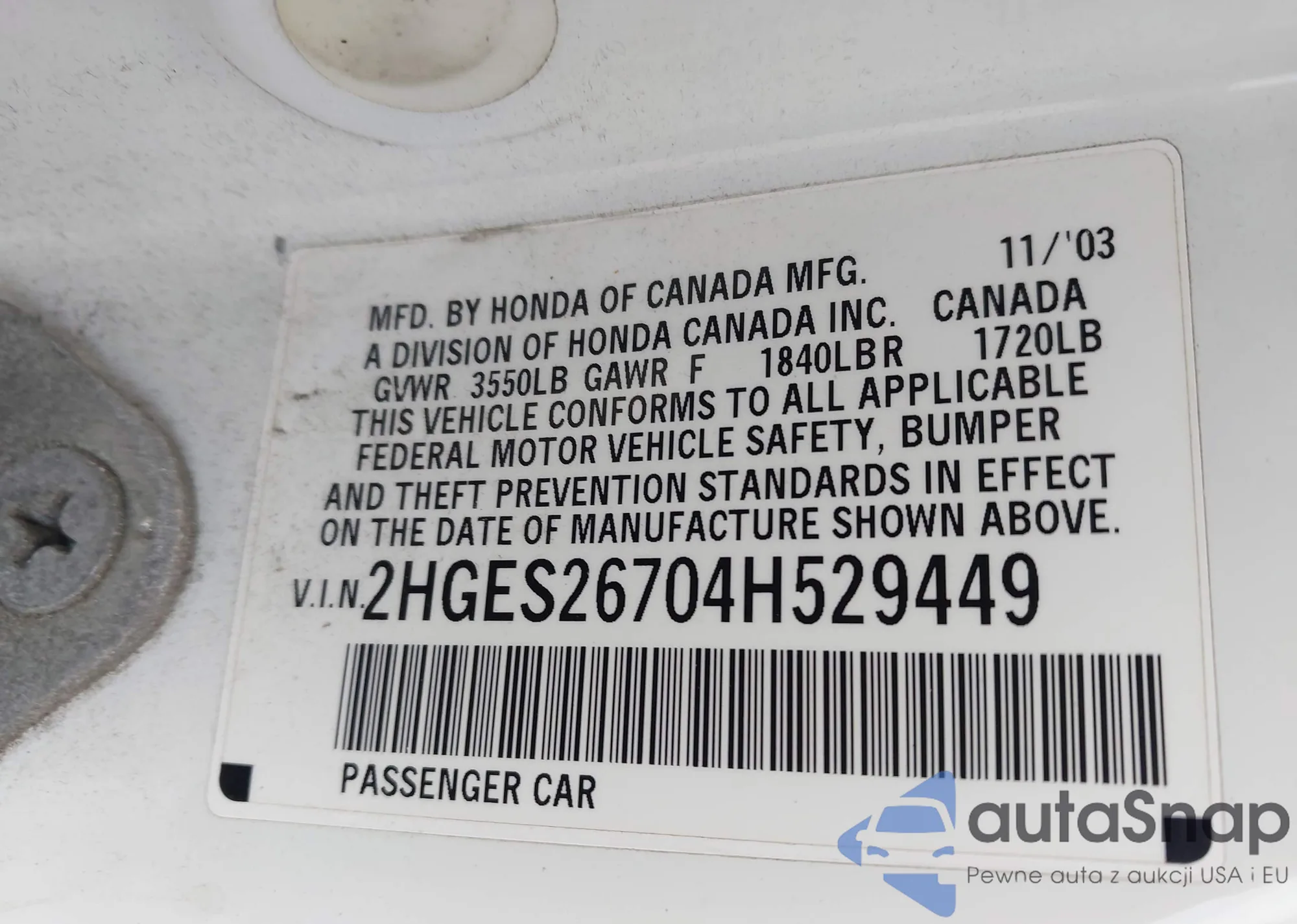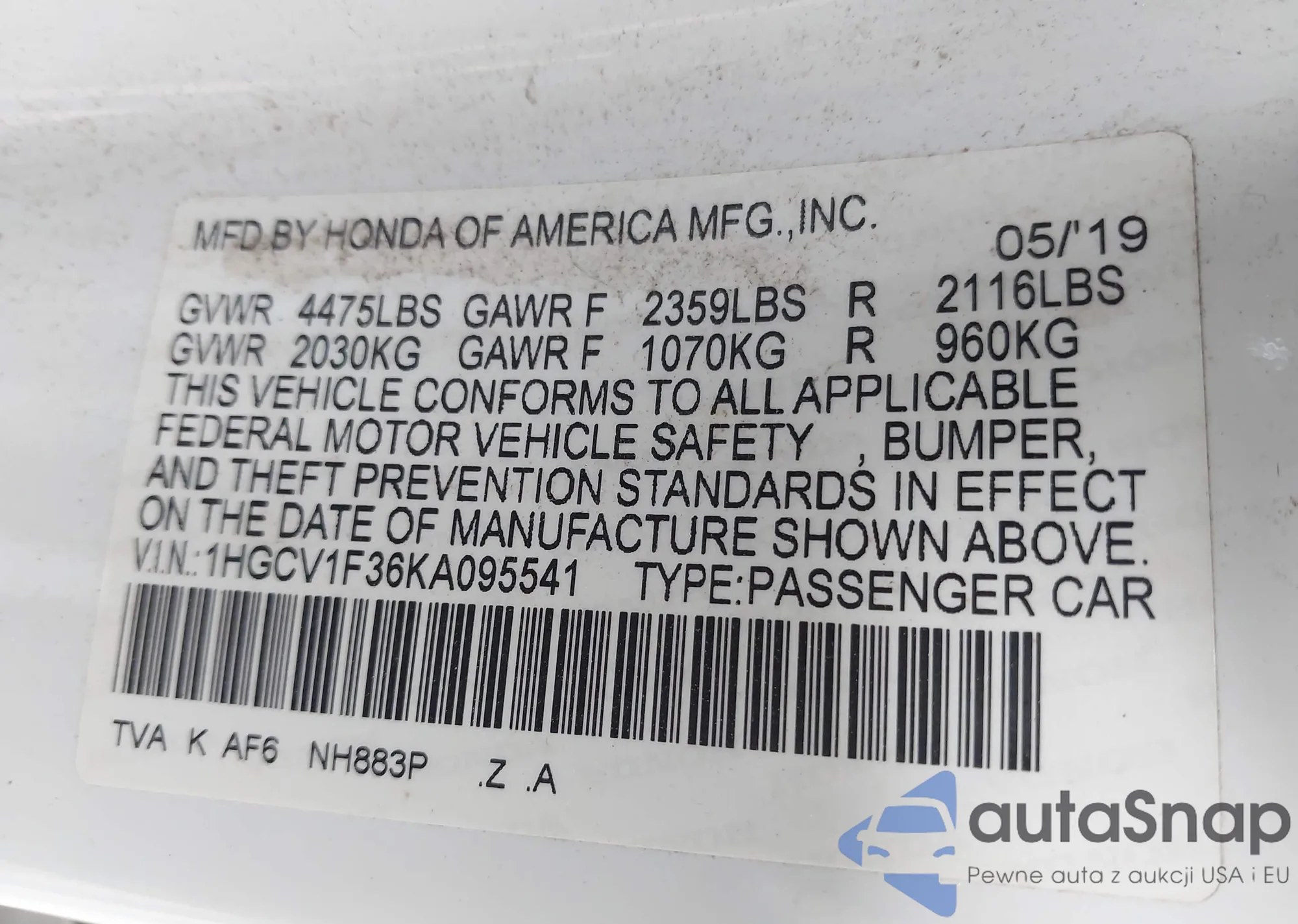 • VIN 1HGCV1F36KA095541
