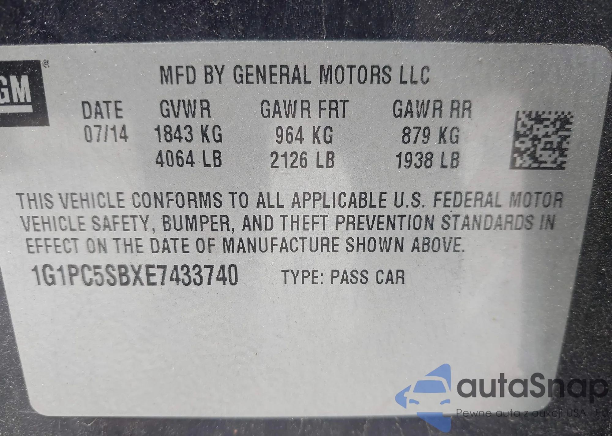 LOT: 42282321 VIN: 1G1PC5SBXE7433740