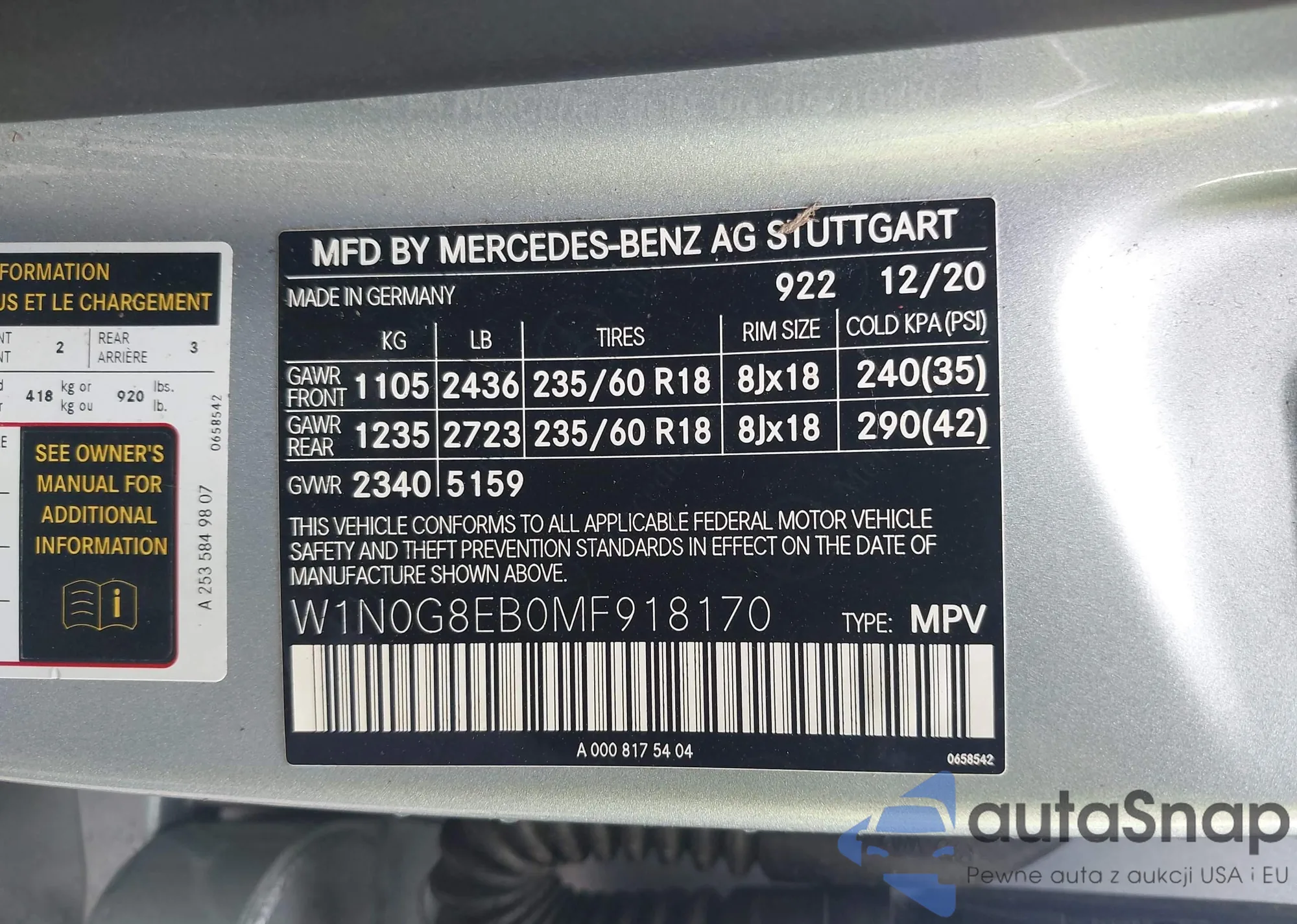 • VIN W1N0G8EB0MF918170
