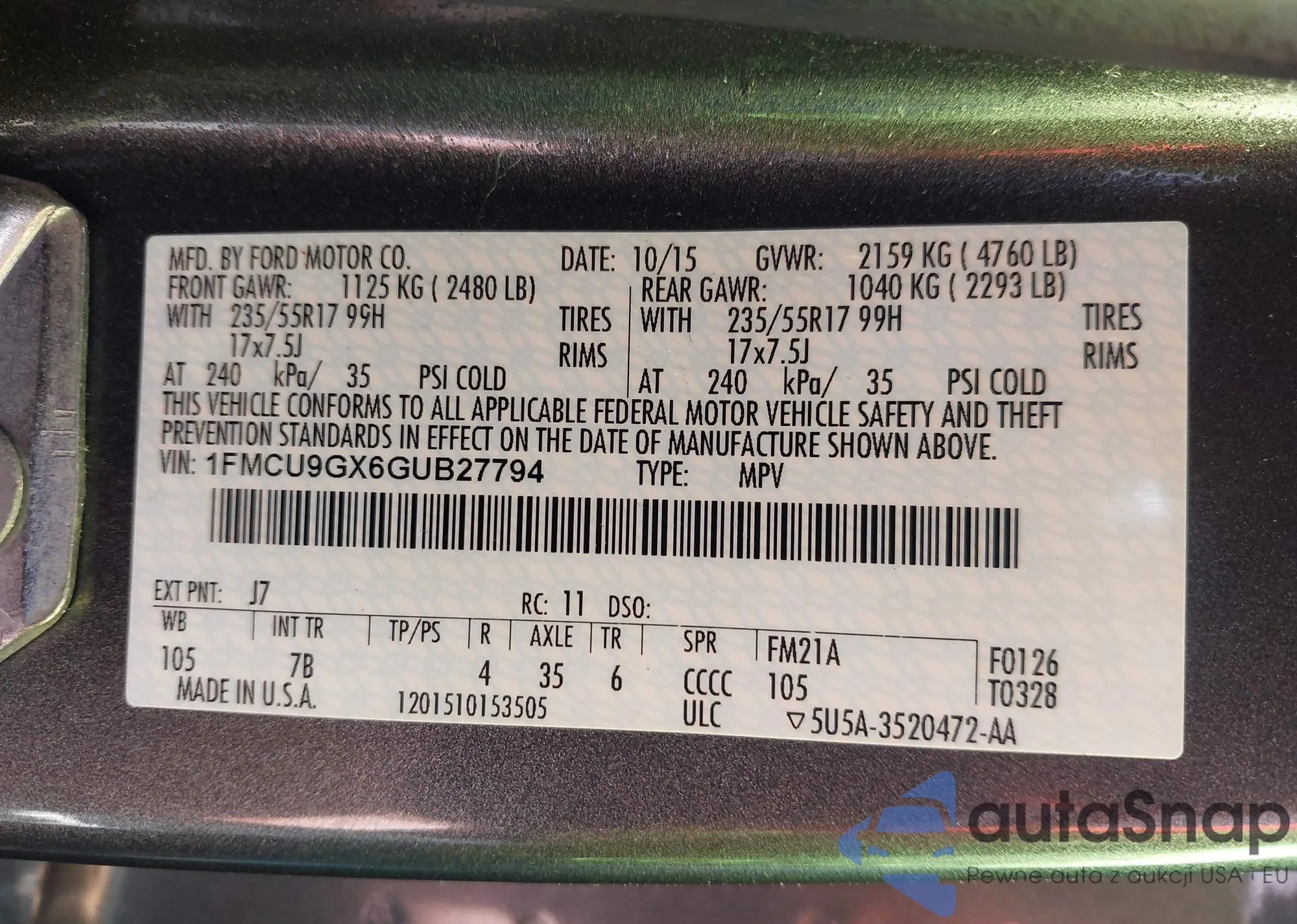 • VIN 1FMCU9GX6GUB27794
