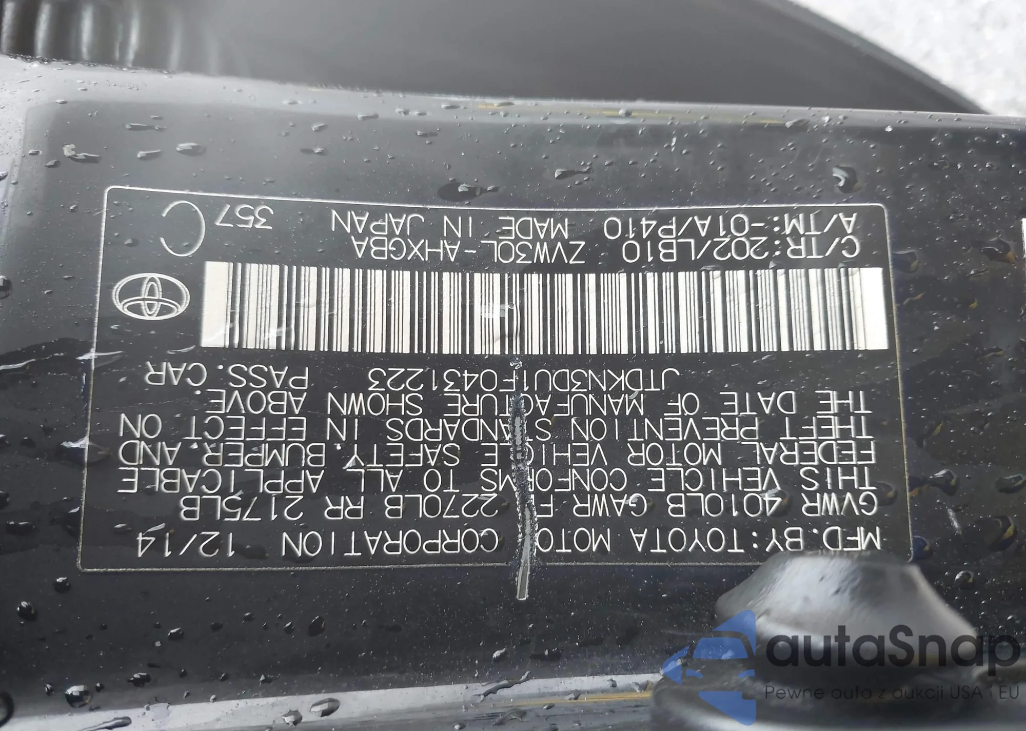 LOT: 42321085 VIN: JTDKN3DU1F0431223