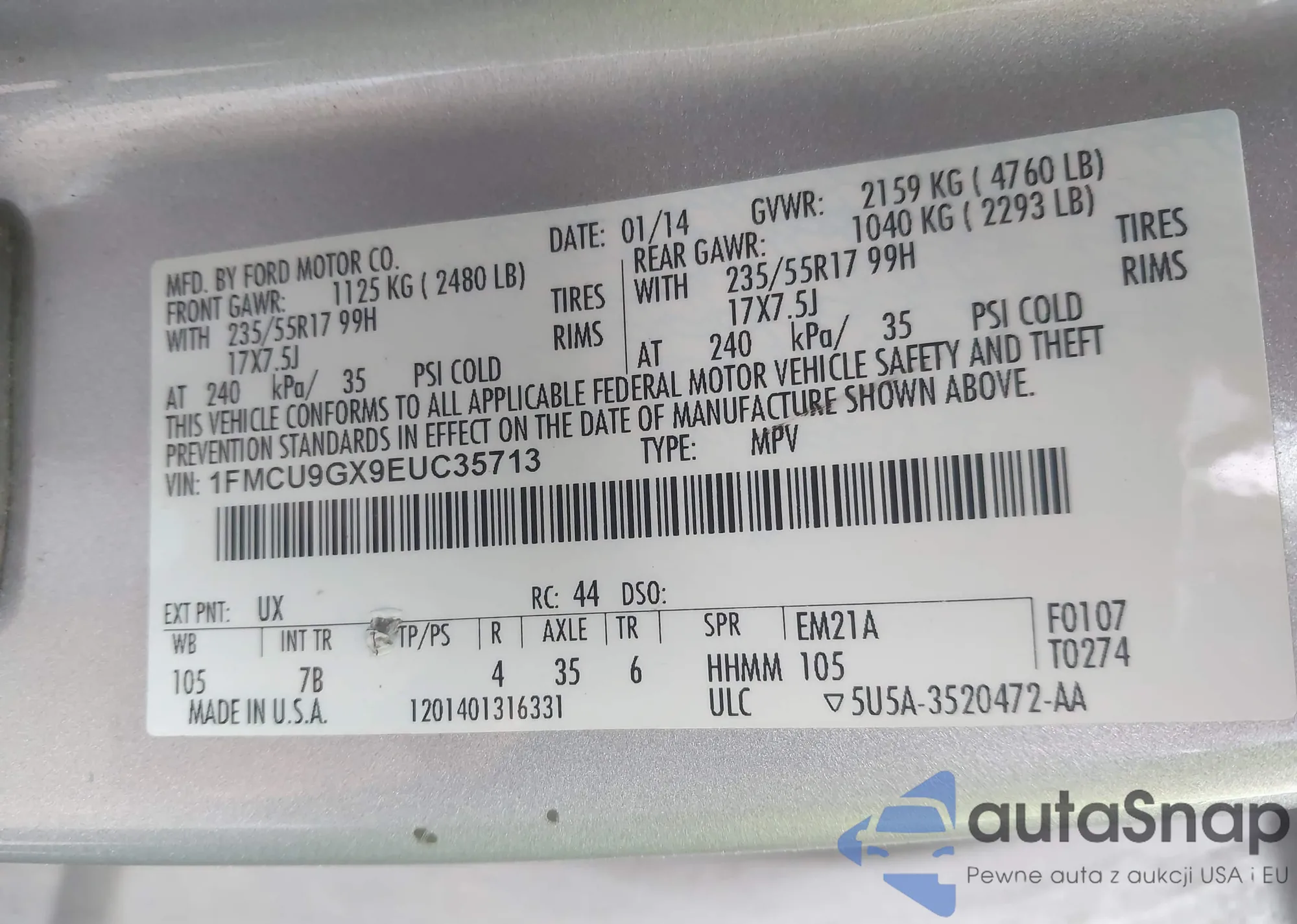 • VIN 1FMCU9GX9EUC35713