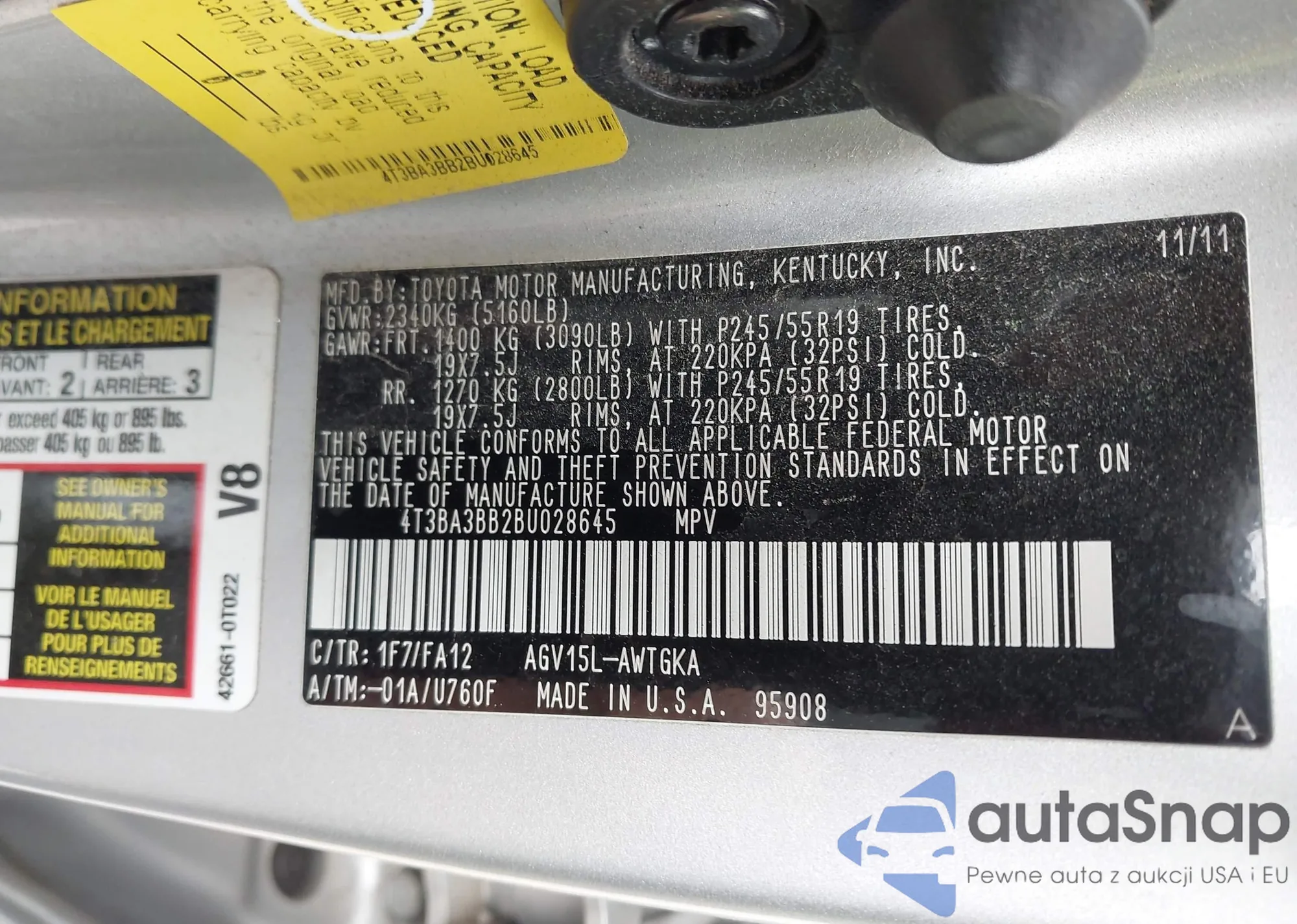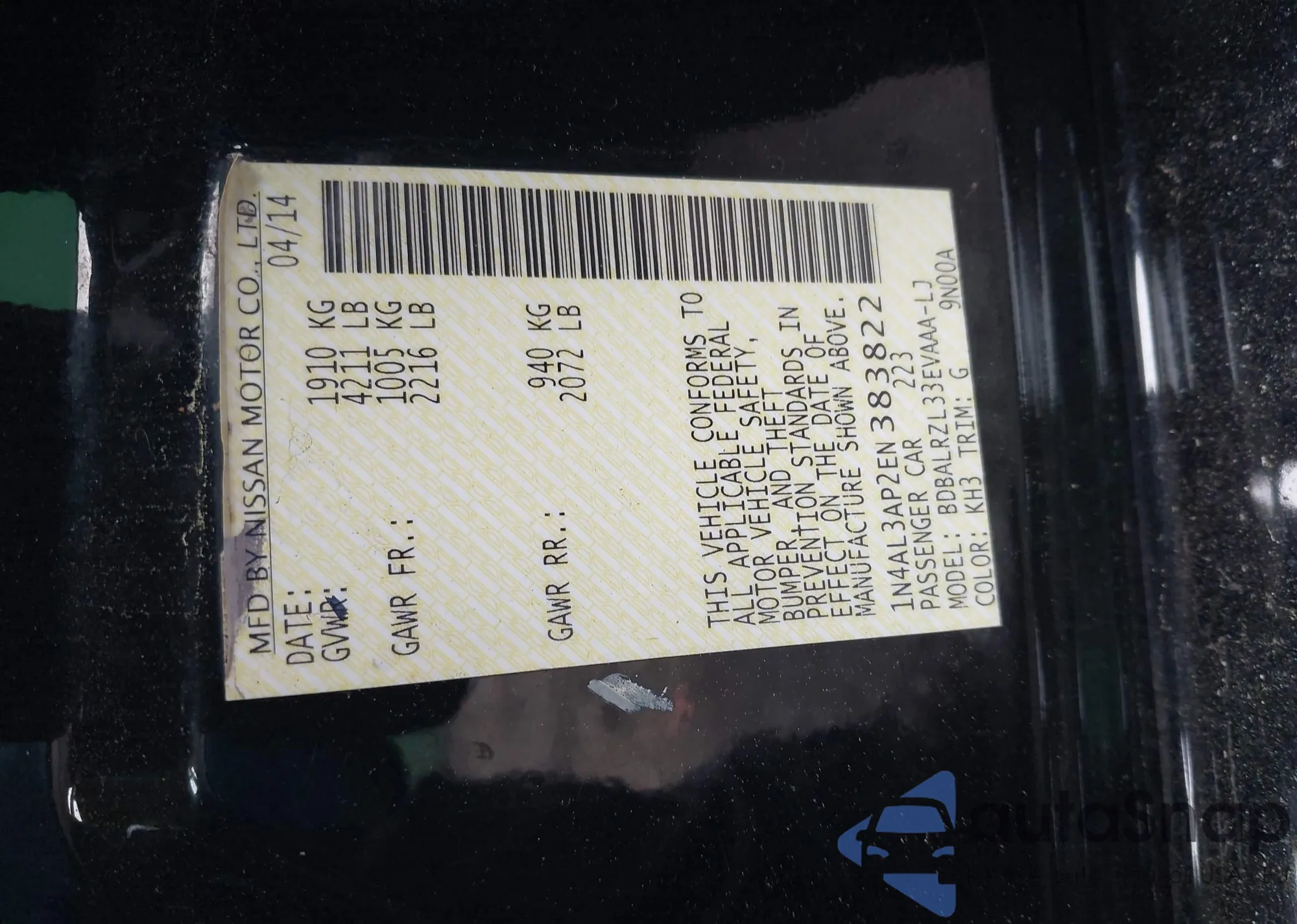 • VIN 1N4BL4BV6LC193828